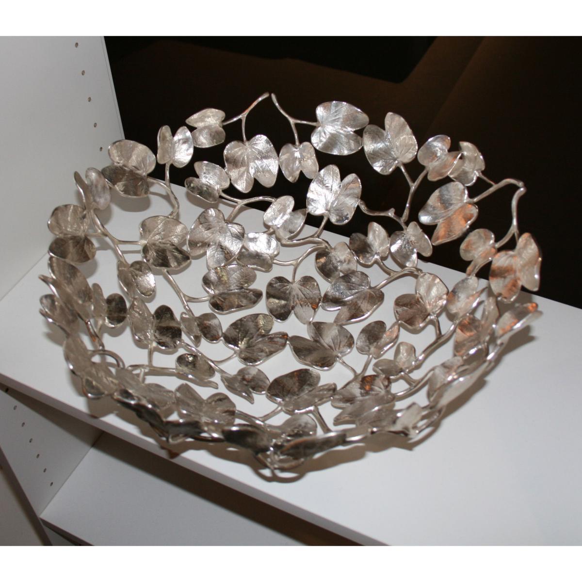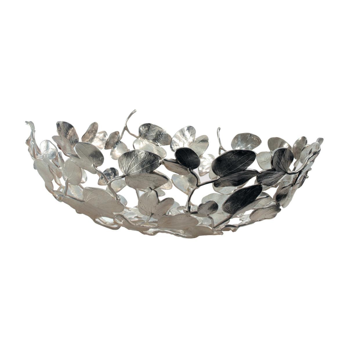 Mann Singh's silvered brass baskets designed for Driade incorporate nature-like elements of twigs, petals and open foliage shaped into Centrepiece. They combine inorganic materials with organic shapes to give off a kind of spiritual and mystical feeling.