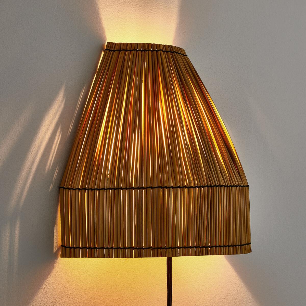 The non-electrified Kadina lampshade. Handcrafted in natural rush with raw touches, the Kadina wall lamp will seduce you with its original charm. Product Details. Metal structure in black epoxy finish. Completely handmade natural rush shade. For E14 bulb. Non-electrified Shop the Kadina collection online at La Redoute. Size. Width: 26cm. Height: 26cm. Depth: 12cm. Dimensions and weight of parcel. L27 x H27 x D32 cm. 1kg.