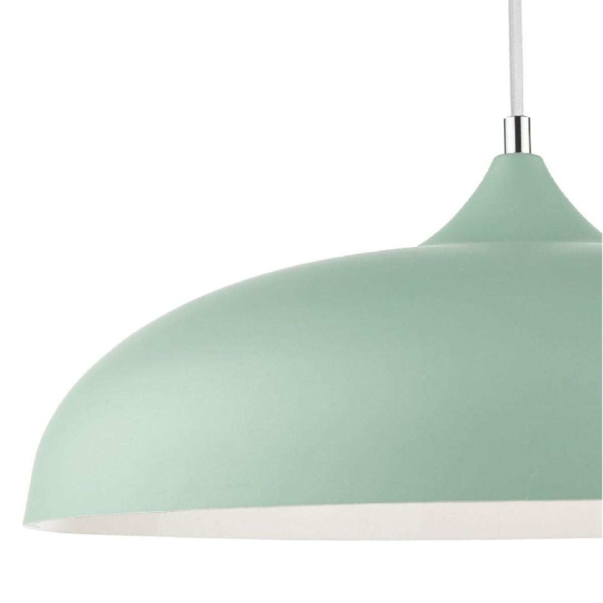 Modern pendant ceiling light boasting a green finish. A stylish fitting, this pendant ceiling light is part of the Kaelan range. Finished in a pale ice green, this height adjustable pendant is dome in shape with shallow curves and features a white inner lining. It is the ideal piece for offering great light in dining rooms, hallways and other living spaces. Pair this light with our 7w LED Large Globe Coated or Clear bulb for a stylish, modern look or alternatively pick from our 4w LED Vintage bulbs for a rustic and industrial glow. Modern pendant ceiling light boasting a green finish. A stylish fitting, this pendant ceiling light is part of the Kaelan range. Finished in a pale ice green, this height adjustable pendant is dome in shape with shallow curves and features a white inner lining. It is the ideal piece for offering great light in dining rooms, hallways and other living spaces. Pair this light with our 7w LED Large Globe Coated or Clear bulb for a stylish, modern look or alternatively pick from our 4w LED Vintage bulbs for a rustic and industrial glow.
