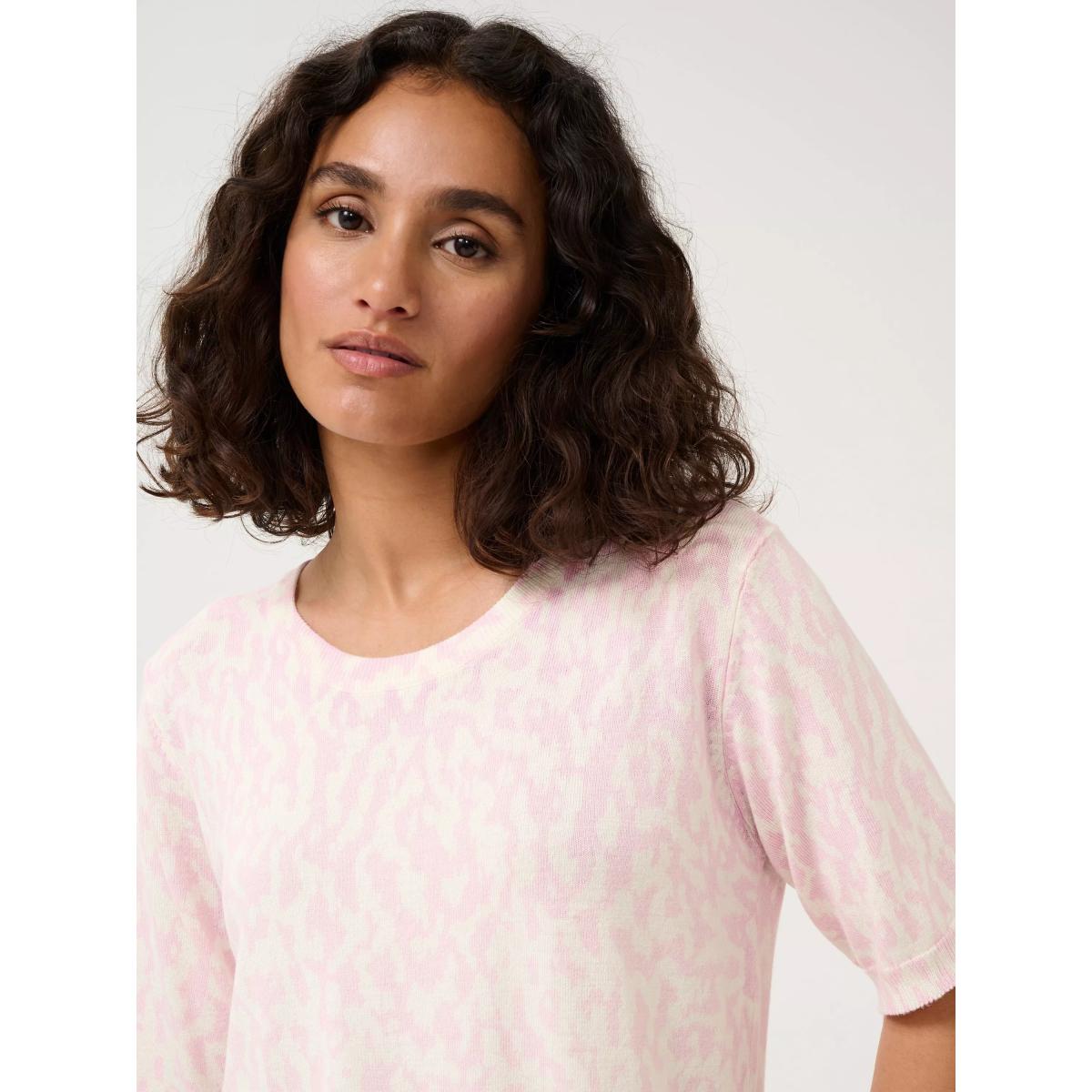 KAFFE Liz Graphic Print Knit Top, Pink/Chalk