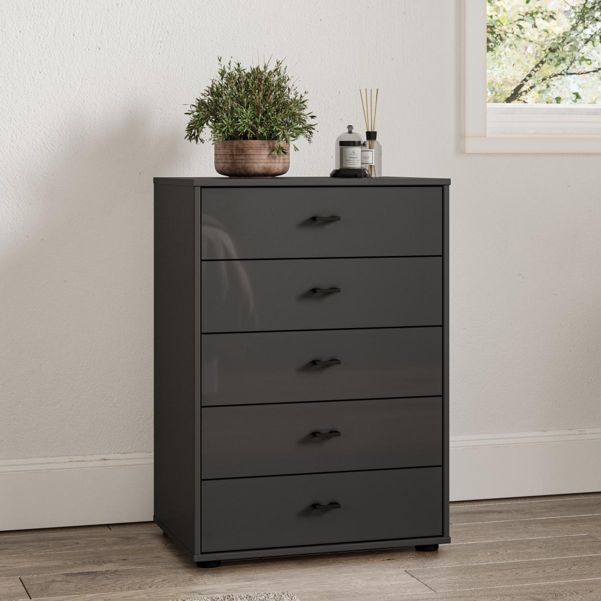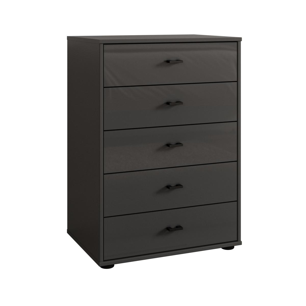 Kahla Glass Fronted Small 5 Drawer Chest Graphite (Grey)
