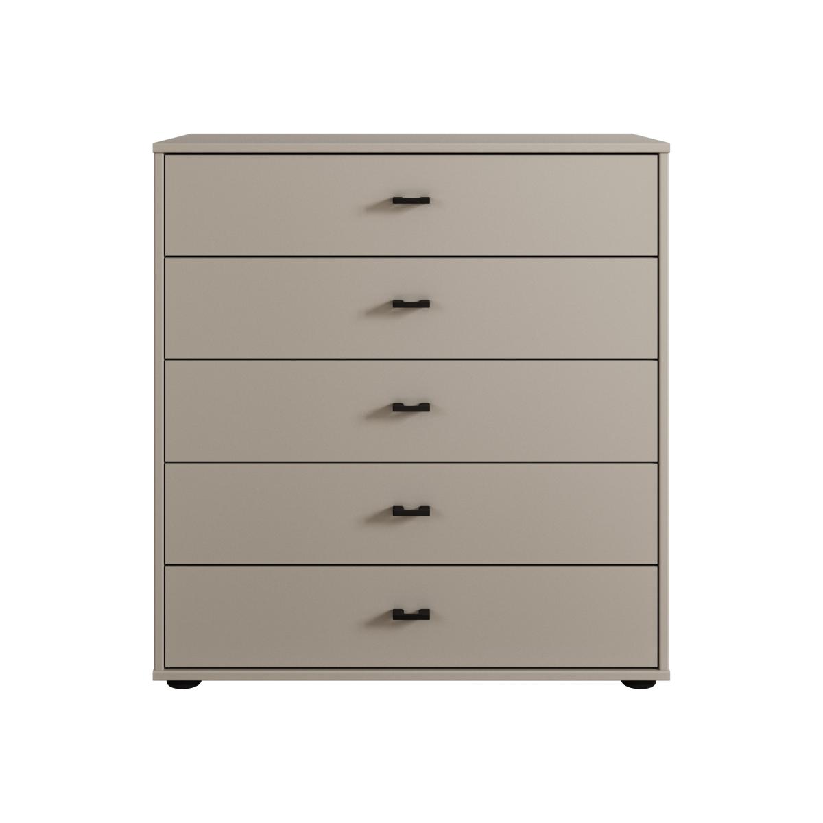 * Made to order* Modern Slate coloured handles* Highly resilient and durable metal fittings* Scratch resistant fronts* Delivered fully assembled* Made in Germany Experience elegance and practicality with the Kahla Matt 3 5 Drawer Chest. Available in a choice of trendy colours, this chest boasts modern slate coloured handles, adding a touch of sophistication. Designed with longevity in mind, this piece is crafted with highly resilient metal fittings and scratch resistant fronts. Delivered fully assembled, the Kahla Chest of Drawers will seamlessly integrate into your bedroom and provide plenty of useful storage space.