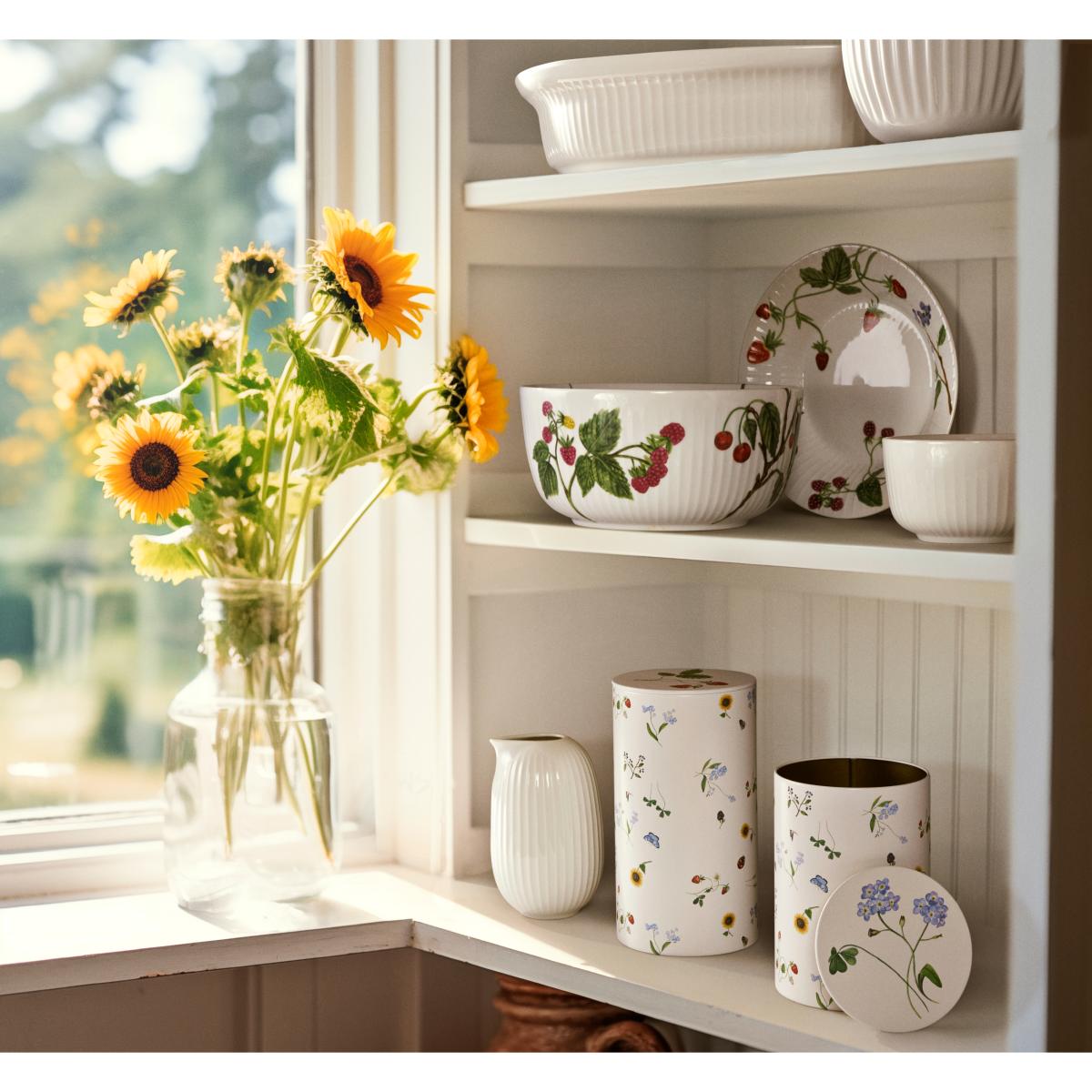 Hammershøi Summer storage jar 14.5 cm from Kähler is a beautiful metal jar with hand-painted flowers and butterflies that create a romantic feel. Designed by Rikke Jacobsen, this 14.5 cm high jar is perfect for storing biscuits and treats. With its elegant design, it becomes a decorative detail in the kitchen or on the patio, bringing a touch of summer beauty.