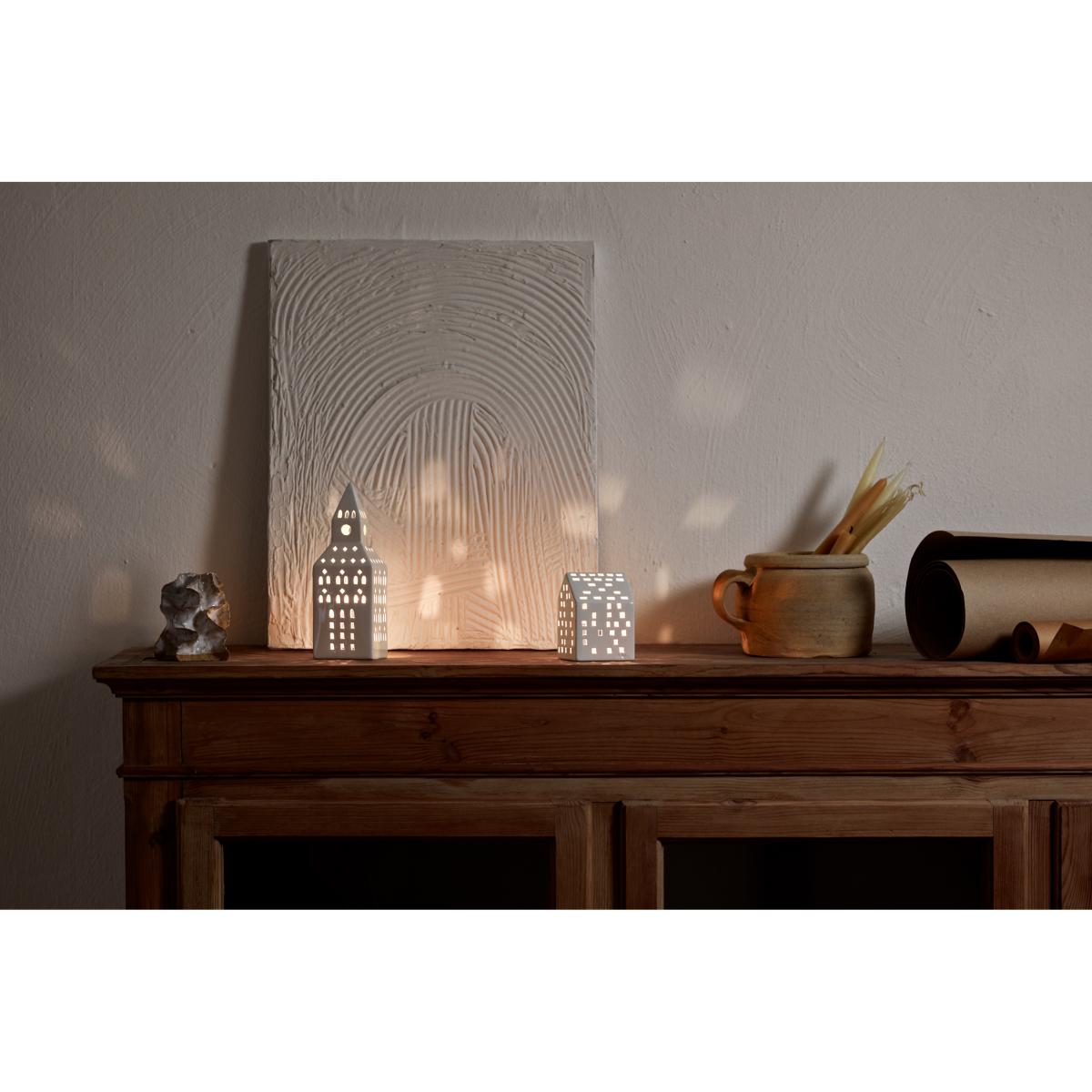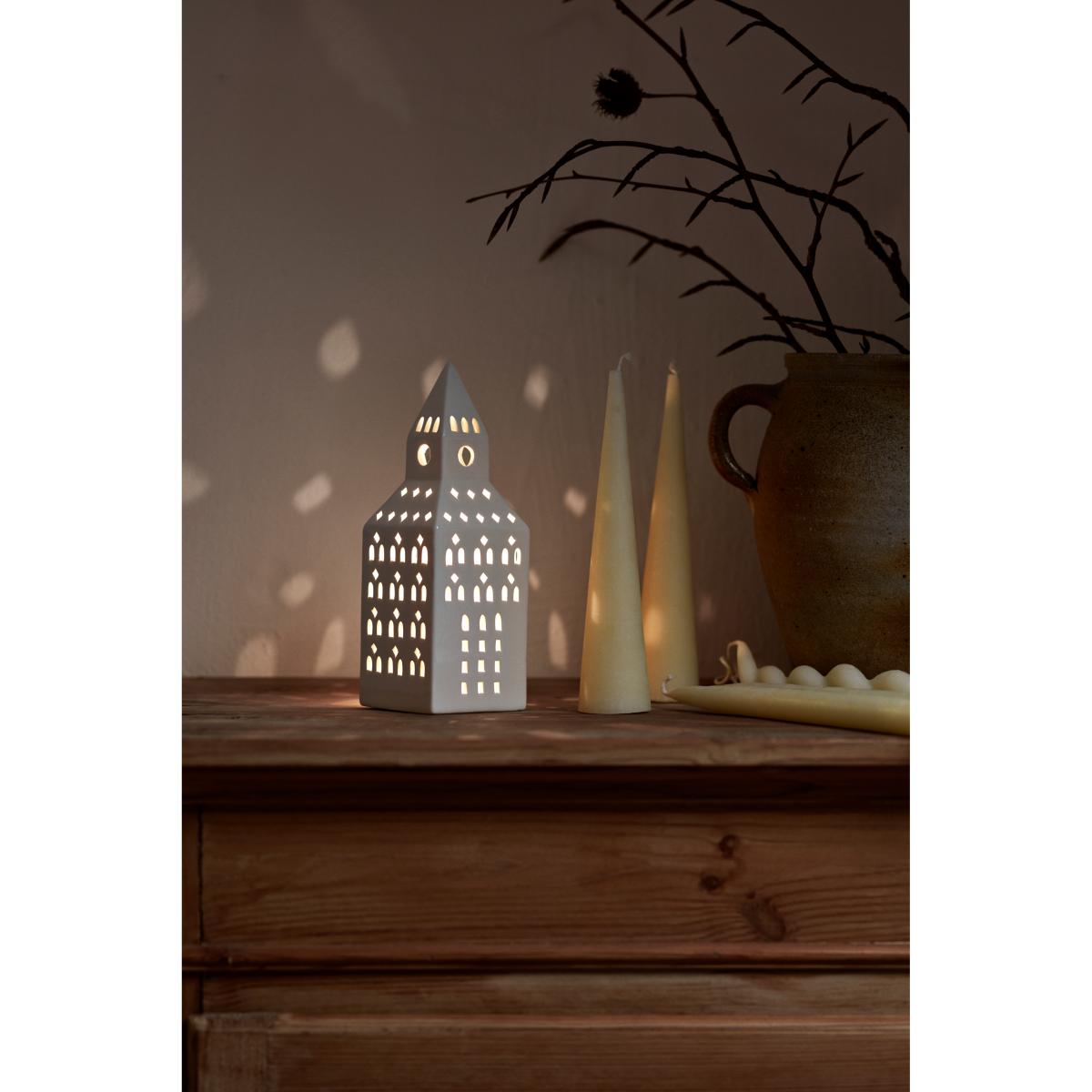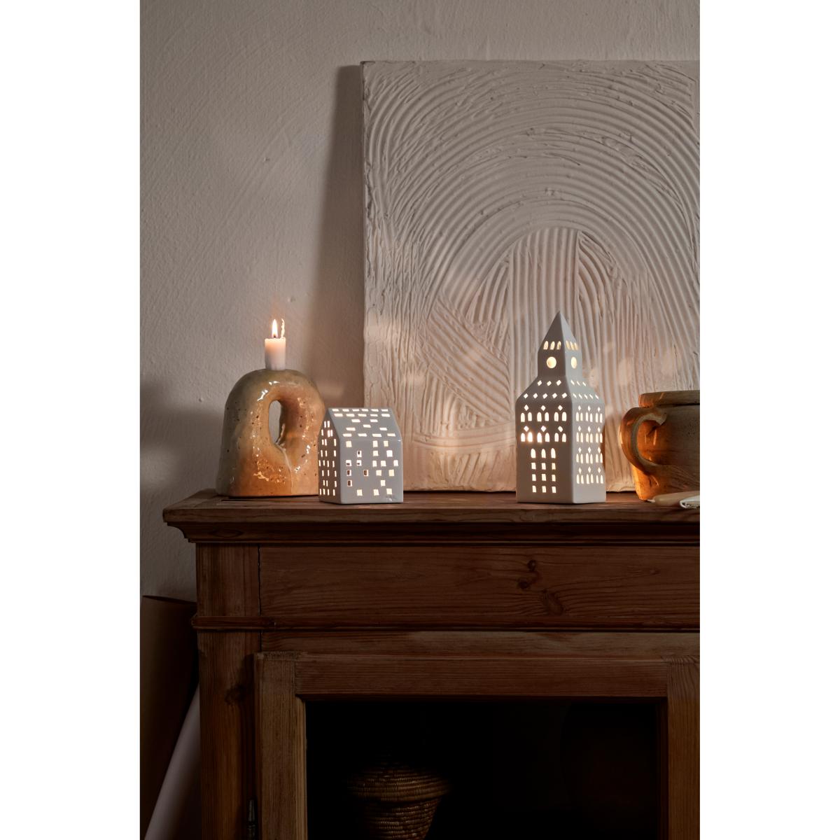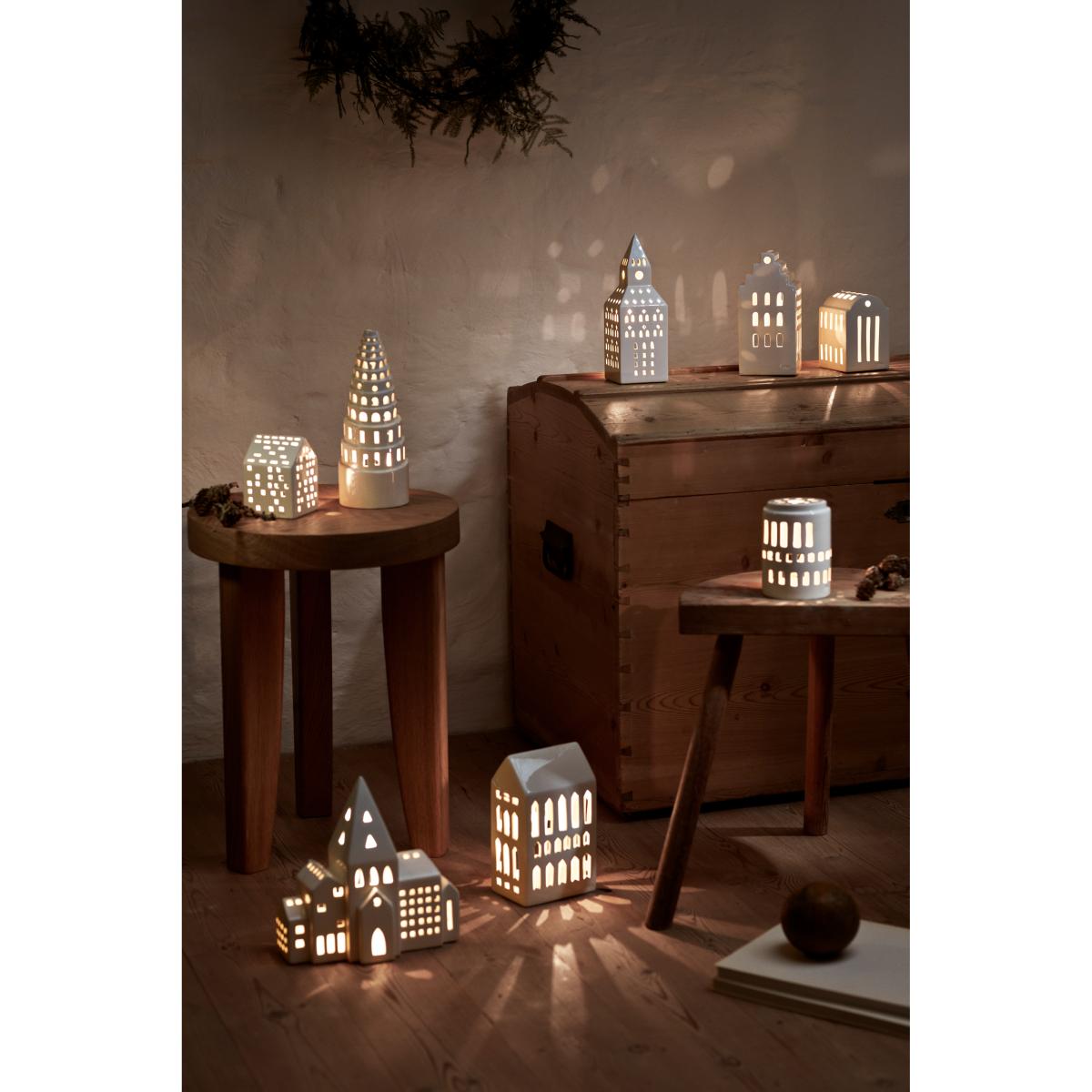 The Urbania candleholders are designed by Mette Bache and Barbara Bendix Becker for Kähler. The candleholders are made of ceramics and are all shaped as different houses with a modern expressions. The flickering light and the shadows, that are cast from the inside of the candleholders, create a beautiful effect and definitely bring a coziness to any room. The Urbania collection consists of five houses: an apartment house, a city house, a church, a pantheon and a basilica church. The candleholders are sold separately.