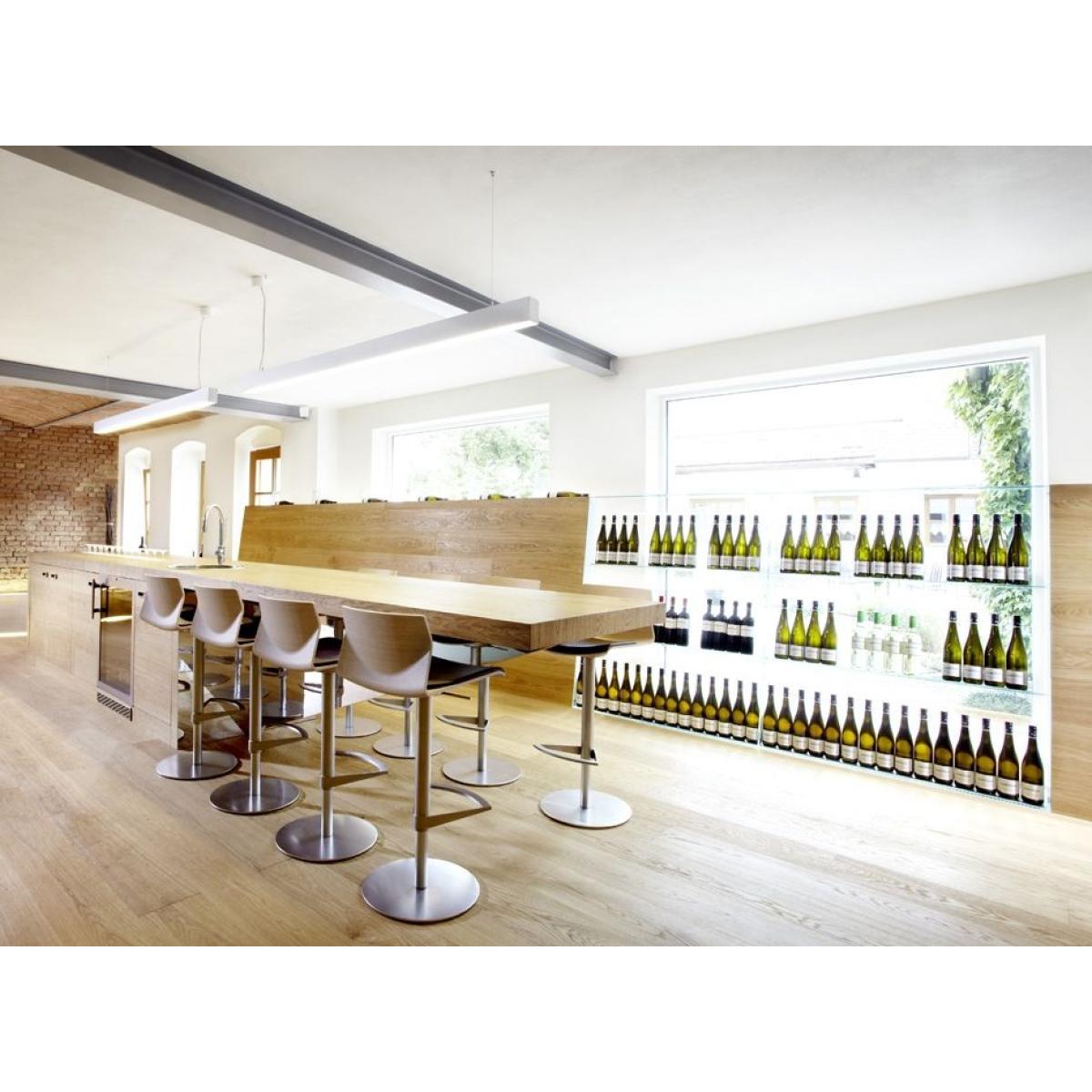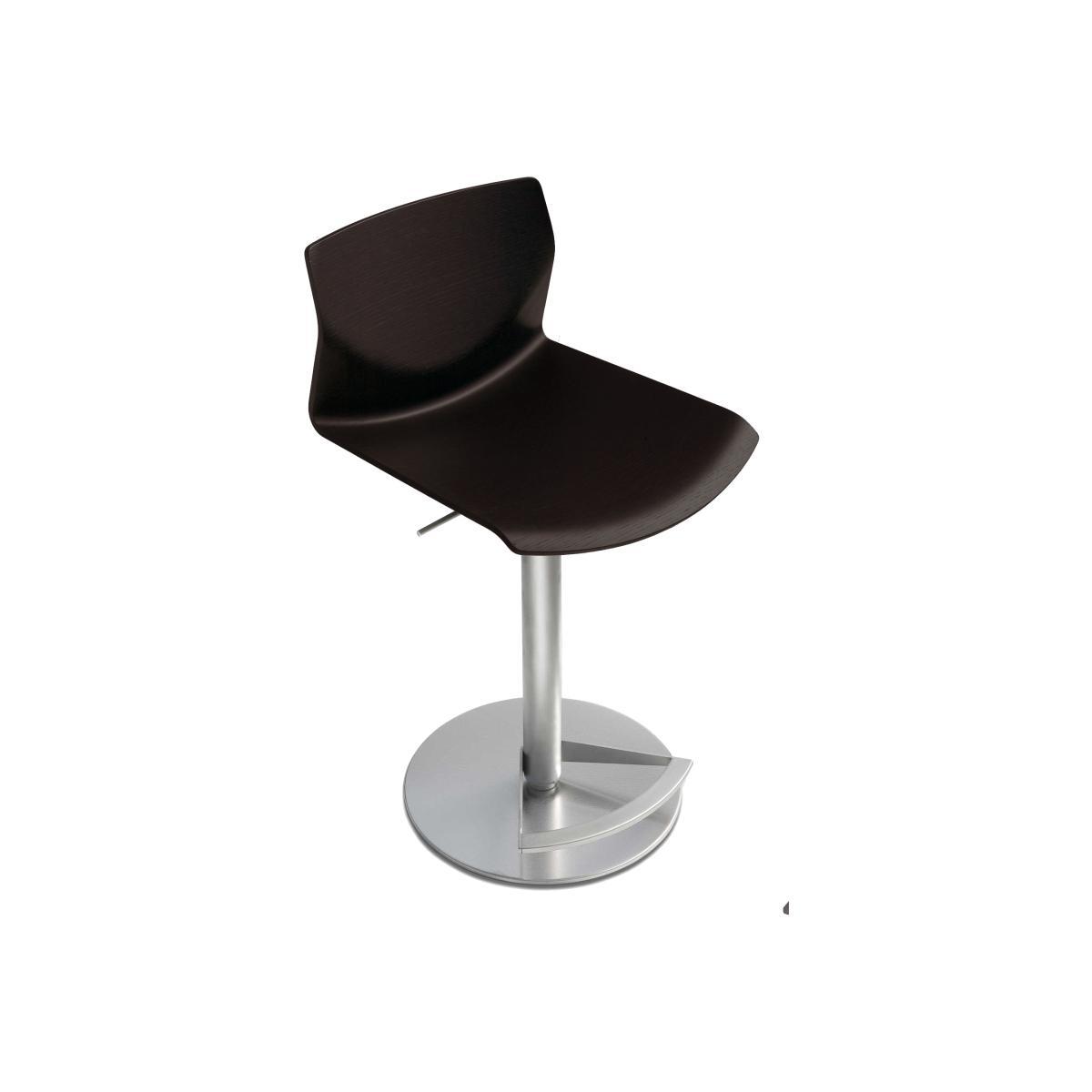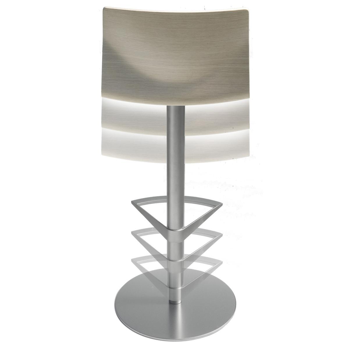 Playing with paper, was the start of this project. If you fold a piece of paper you get a crisp edge, and if you bend it you get a gentle but tensioned curvature. I tried to fix the beauty of this natural phenomena as a chair. The name, KAI, is a Japanese word. Its pronunciation can be interpreted in several different meanings: KAI can be a "seashell". The oppositional two elliptical lines recall an opened seashell. KAI can be "comfort". KAI can be "meeting". KAI can be "answer". KAI can be "pioneer". Stackable chair with sandblasted stainless steel frame and seat in curved plywood with leather cushion. If stacked, we suggest to put a protection on the leather cushion.