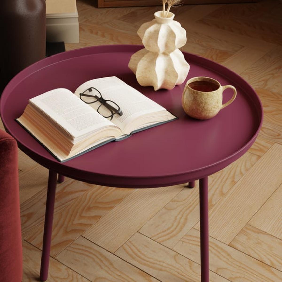 I love the little coffee table’s fresh, modern look and versatile size, making it a great addition to various interiors. Its bold colour instantly adds personality, so it works well in eclectic, contemporary, or mid-century inspired spaces. For styling, try pairing it with a mix of textures - perhaps a soft velvet cushion on nearby seating or natural elements like dried flowers or potted plants to complement its simple form. Practical tips include using it as a surface for everyday essentials like books, trays, or candles, but also leaving space for decorative objects to create visual interest. Its height and size make it perfect for smaller living rooms or cosy corners, where it can serve as both a functional and aesthetic focal point.