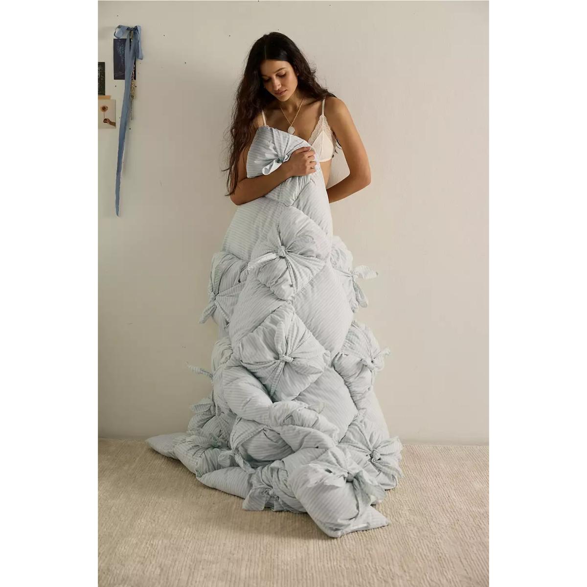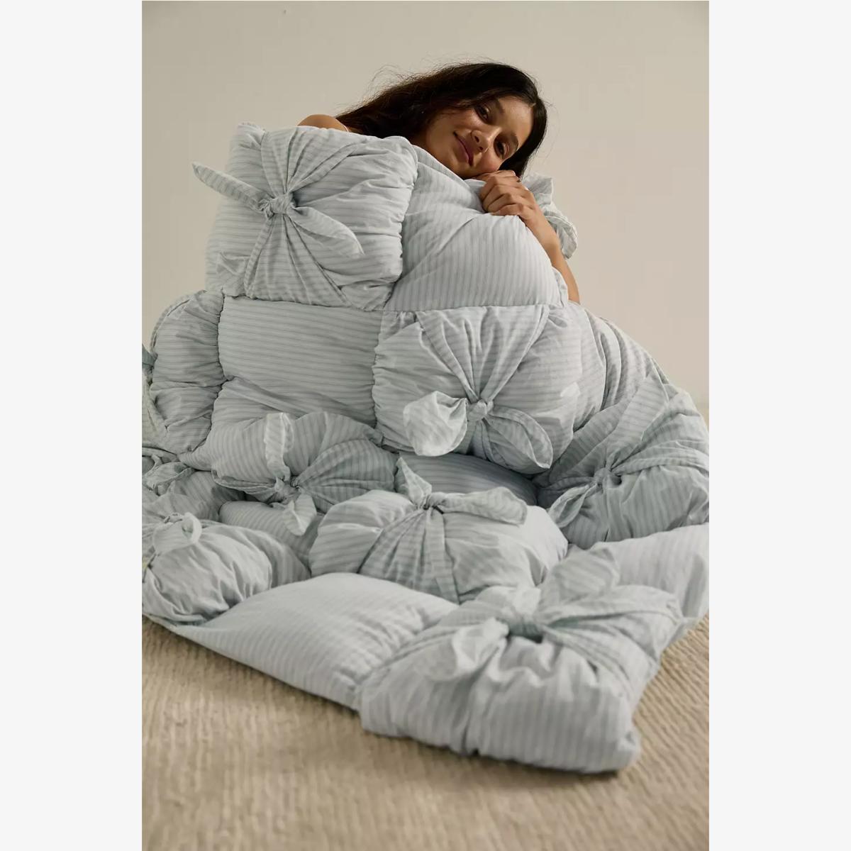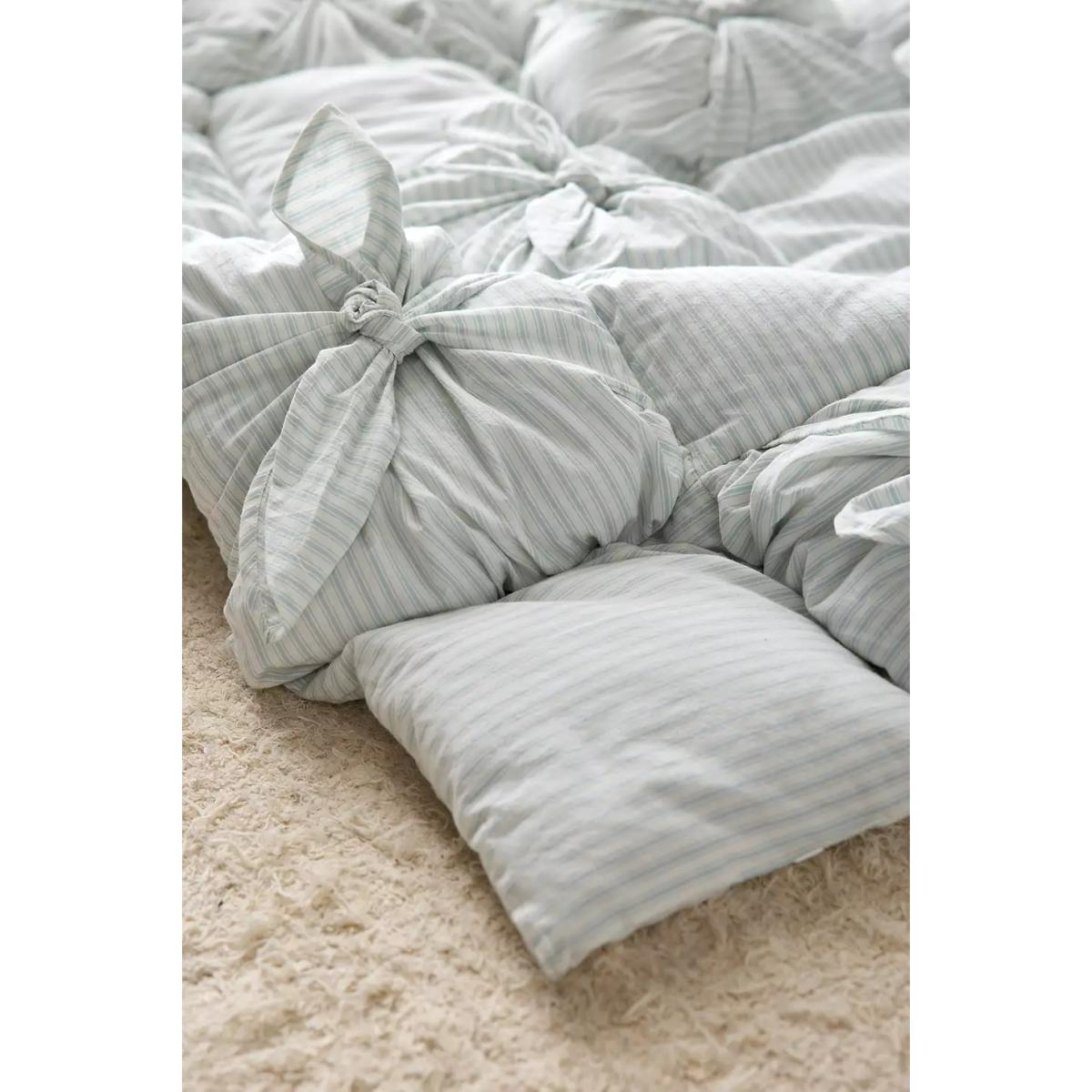 Add dimension to your bedroom with this striped puffy throw. Crafted from cotton with a soft lining and puffy quilted pattern. Finished with knot detailing. **Content + Care** \- Throw: 100% cotton \- Lining: 100% polyester \- Cold machine wash **Size** \- 125 x 150 cm
