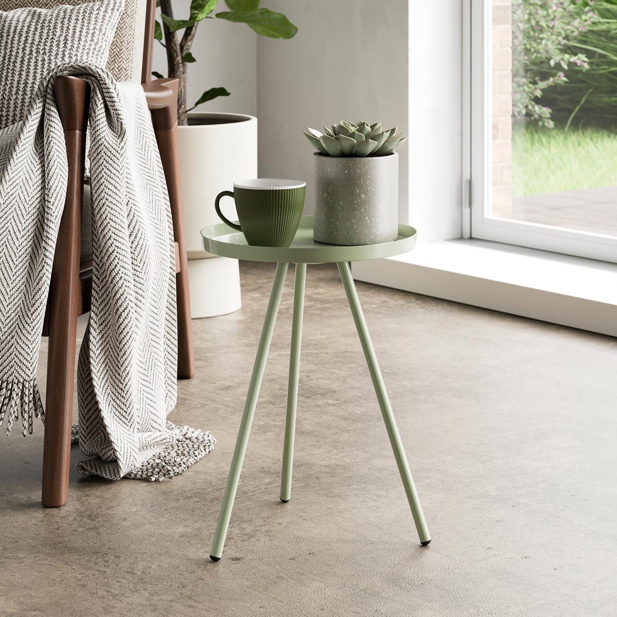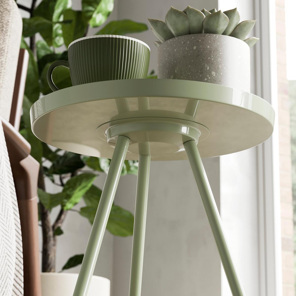 I really like the green side table for its fresh and understated aesthetic, making it versatile across various interiors. It works particularly well within Scandi-inspired or minimalist spaces due to its simple yet stylish form. Practical styling tips include pairing it with neutral tones or natural textures to let the green pop, or using it as a supporting piece in a cosy nook with a plant or a small lamp on top. Its slim profile makes it perfect for compact spaces, yet it adds a touch of colour and personality to both modern and relaxed interiors.