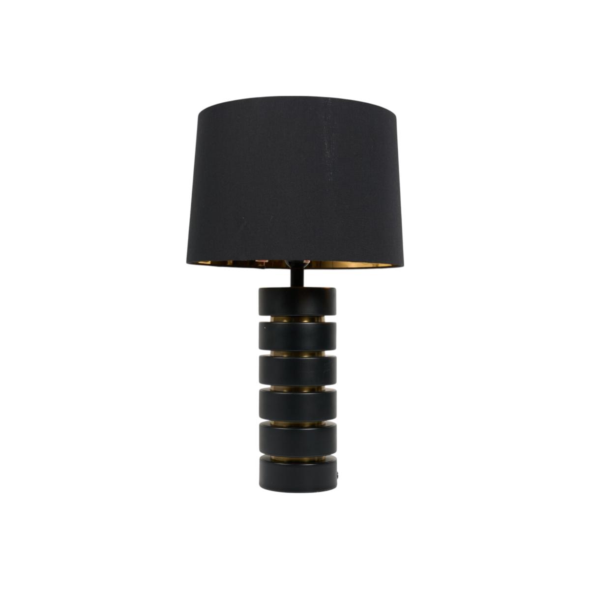 Infuse your space with modern sophistication with the Kai Table Lamp. Combining pure sophistication and functionality, this lamp flaunts a minimalist design that brings visual depth and a contemporary feel to any room. Its sleek black hue perfectly contrasts the brass tones, accentuating its appeal further. The black shade diffuses soft light in your space to create a warm and inviting atmosphere that's perfect for reading, sleeping, or simply unwinding. Blending seamlessly with a variety of interior themes, this lamp is perfect for enhancing any urban chic or modern home.