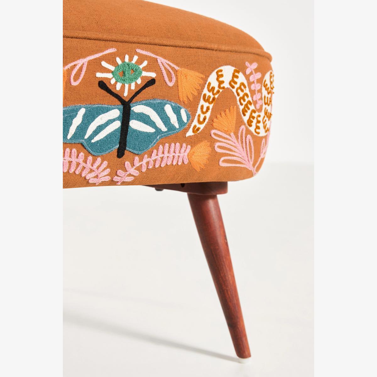 I love how this little chair brings a pop of colour and personality to a space. Its embroidered floral design makes it a standout piece, perfect for adding charm to a corner in a living room, bedroom, or even a hallway. The petite size means it works well in more compact environments or as an accent piece alongside larger furniture. For styling tips, consider pairing it with neutral or muted tones to let the embroidery shine, or go bold with complementary colours in neighbouring accessories. It also works beautifully in eclectic or boho interiors, but can effortlessly add a touch of whimsy to modern or Scandinavian schemes as well.