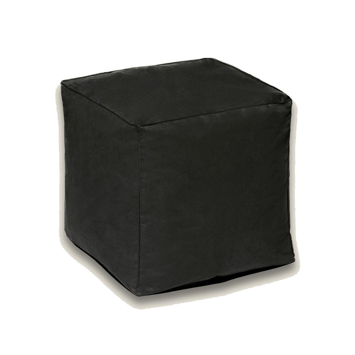 Kaikoo Faux Leather Pouffe - Black, Black