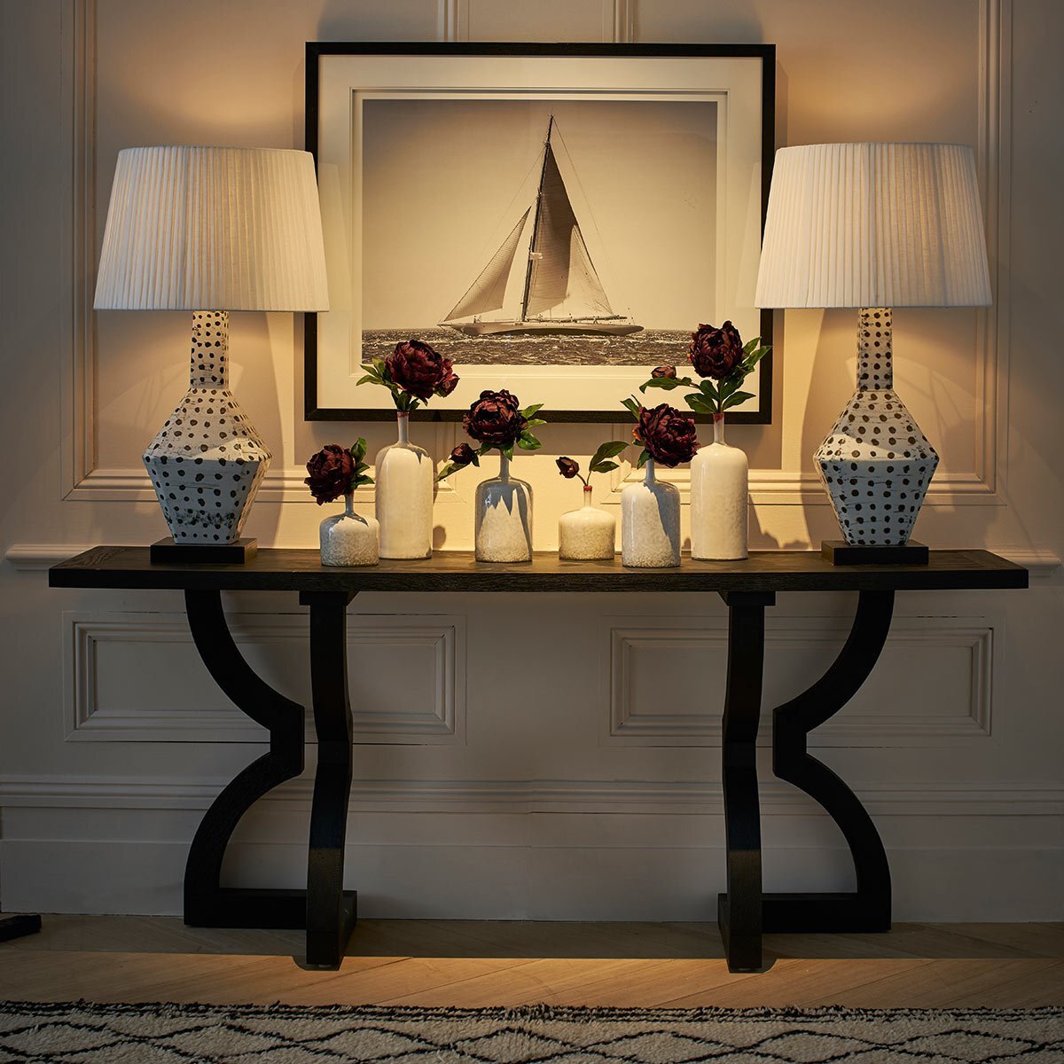 The Kaishu console is a stylish choice that effortlessly adds a sleek modern touch to a variety of interiors. I love its clean black finish, which pairs well with both neutral and bold colour schemes, making it versatile for hallways, living rooms, or even dining areas. Its open, minimal silhouette offers practicality without compromising style, so it’s perfect for displaying decorative items, lamps, or even a collection of small plants. For a polished look, keep the top uncluttered with a statement mirror above or a few carefully chosen accessories, and consider layering with textured or contrasting pieces nearby to bring out its contemporary appeal.