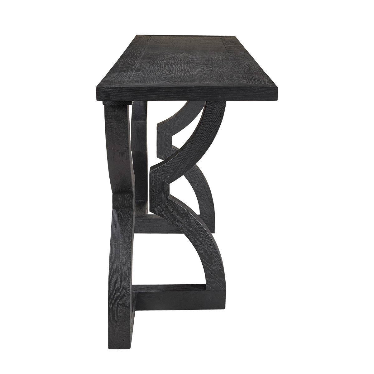 A dramatic and lengthy console table, crafted from oak wood painted black, with curvaceous legs that resemble Chinese calligraphy. Our Kaishu Console Table would look excellent in a sitting room or hallway with a mirror hanging above. Kaishu Console Table - Black