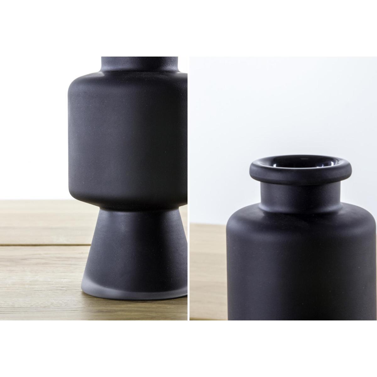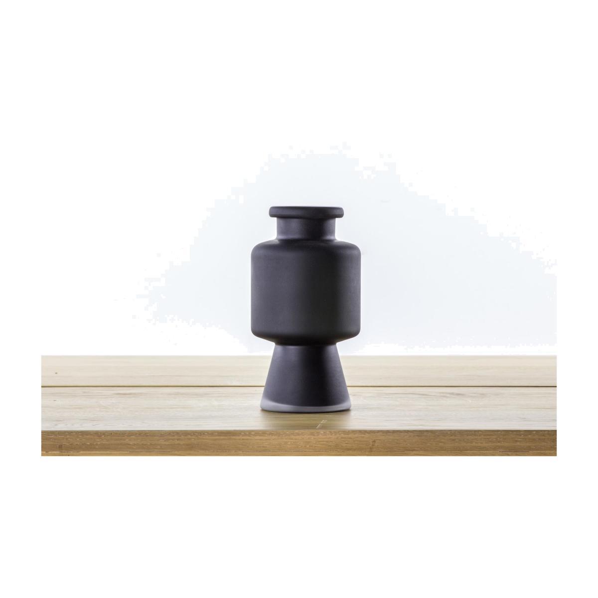A real statement piece, the Kaison Black Sculptural Vase in Black frosted Glass features a conical base with a cylindrical collar and narrow neck. This would look fabulous teamed with a simple single stemmed bloom, but is equally stunning as a stand alone piece