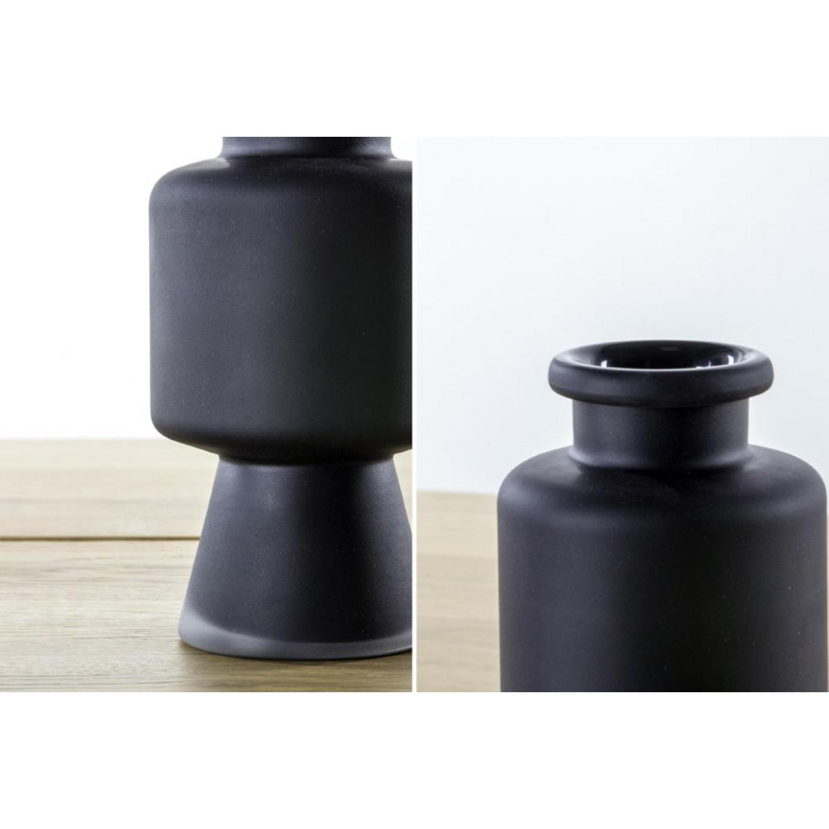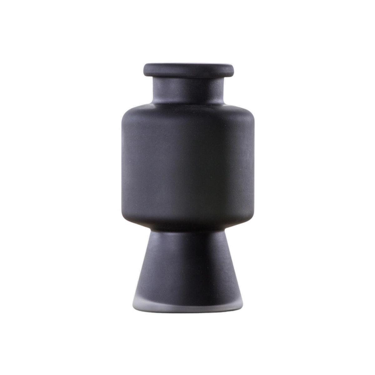 A real statement piece, the Kaison Black Sculptural Vase in Black frosted Glass features a conical base with a cylindrical collar and narrow neck. This would look fabulous teamed with a simple single stemmed bloom, but is equally stunning as a stand alone piece