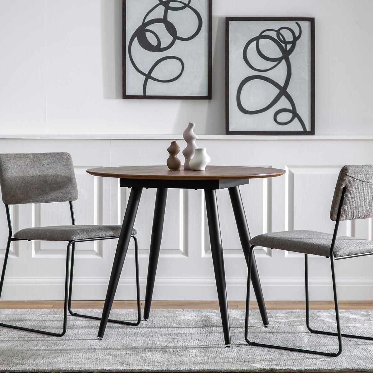 I love how this oak round table combines a warm timber top with slim metal legs, keeping the look light and versatile. It slips easily into compact dining nooks, open-plan kitchens or breakfast corners, and works equally well in Scandi, industrial or contemporary schemes - just add simple upholstered chairs for contrast. For styling, keep centrepieces minimal: a linen runner or a small cluster of ceramic vases maintains its clean profile. A single low pendant light overhead will help define the area, while pared-back tableware ensures the design stays uncluttered.
