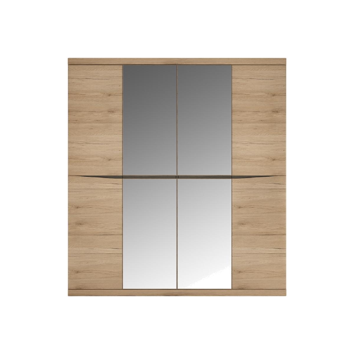 This Kala Four Door Mirror Wardrobe can be put alongside several other items from the Kala collection for the ultimate storage package. Combining style and practicality, the Kala Four Door Mirror Wardrobe is beautifully crafted with a natural oak finish. For the larger bedroom, those who share, or even those who have a lot of clothes, this four door, soft closing door wardrobe has two central full length mirrors fitted so you can always make sure you look your best! The beautiful design has an oak finish with contrasting dark trims. Perfect for storing away your shirts and dresses on the hang rail, this wardrobe will keep your favourite garments hung well and free from creases. It combines a traditional look with a modern twist, suiting any surrounding decor.