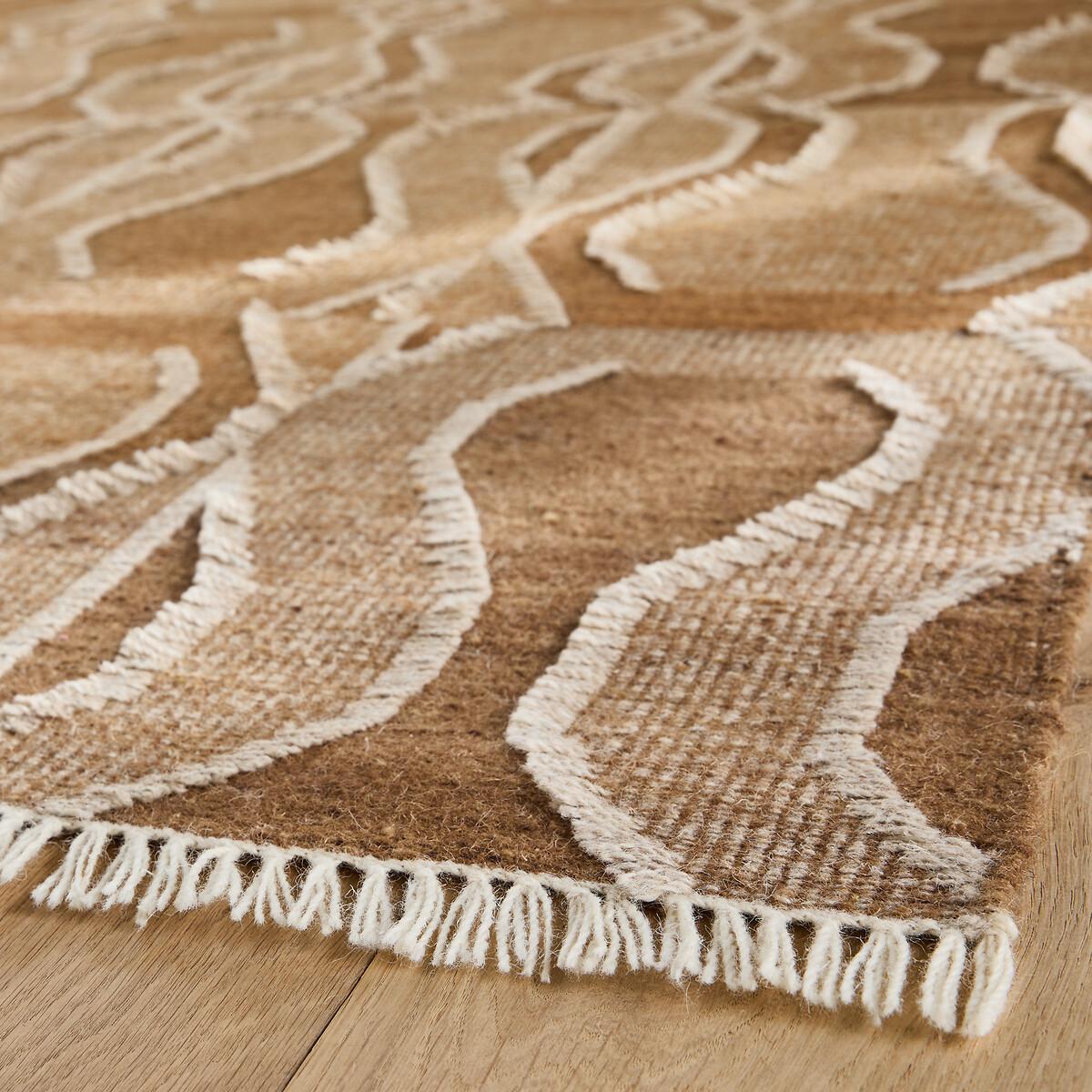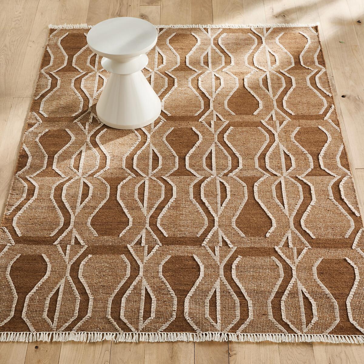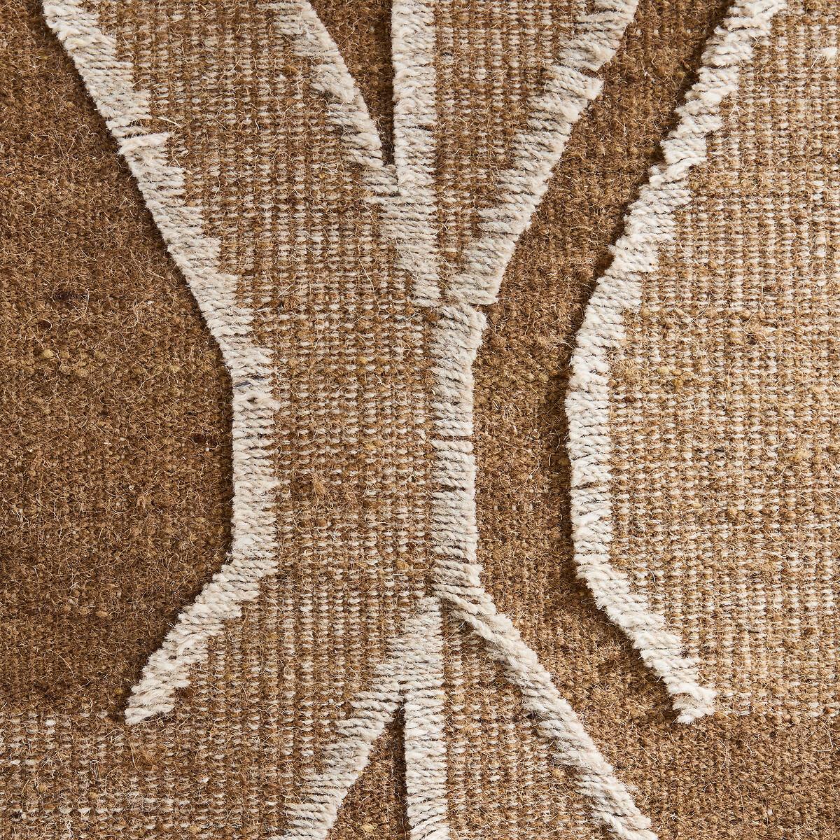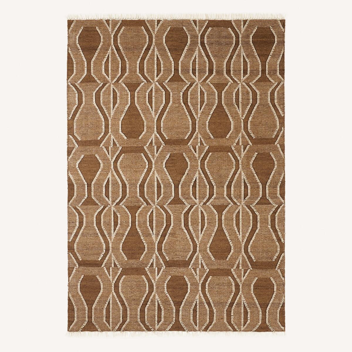 Kalah combines tribal style and modernity. Woven flat, this pure wool rug has a uniform, structured surface, highlighted by small contrasting fringes that create large geometric designs. Worked in a camel shade, its tones evoke the richness of coloured earths. Each rug is handmade in India by artisan weavers, masters of an ancestral skill handed down from generation to generation. Knotted, tufted or hand-woven, our rugs perpetuate traditional weaving techniques that bear witness to a culture dating back thousands of years. Genuine decorative elements offering thermal and acoustic insulation, they add a unique and warm touch to your home furnishings. Product Details • 100% wool • Craftsmanship: hand woven • Weight: 1300g/m² • Pile height: Flat woven. Quality Info • Wool is a warm and comfortable natural fibre. In addition to being resistant to wear and durable over time, the wool carpet is also an excellent thermal and sound insulator. • Each piece is handcrafted, according to ancestral know-how. There may therefore be slight variations in colour from one carpet to another.. They contribute to the beauty of each piece and make it unique. Care Advice • Remove any stains immediately with a clean, damp cloth. • Dry clean recommended. Dimensions • Width 120 x Length 180cm • Width 160 x Length 230cm • Width 200 x Length 290cm. Delivery: • Available for home delivery.