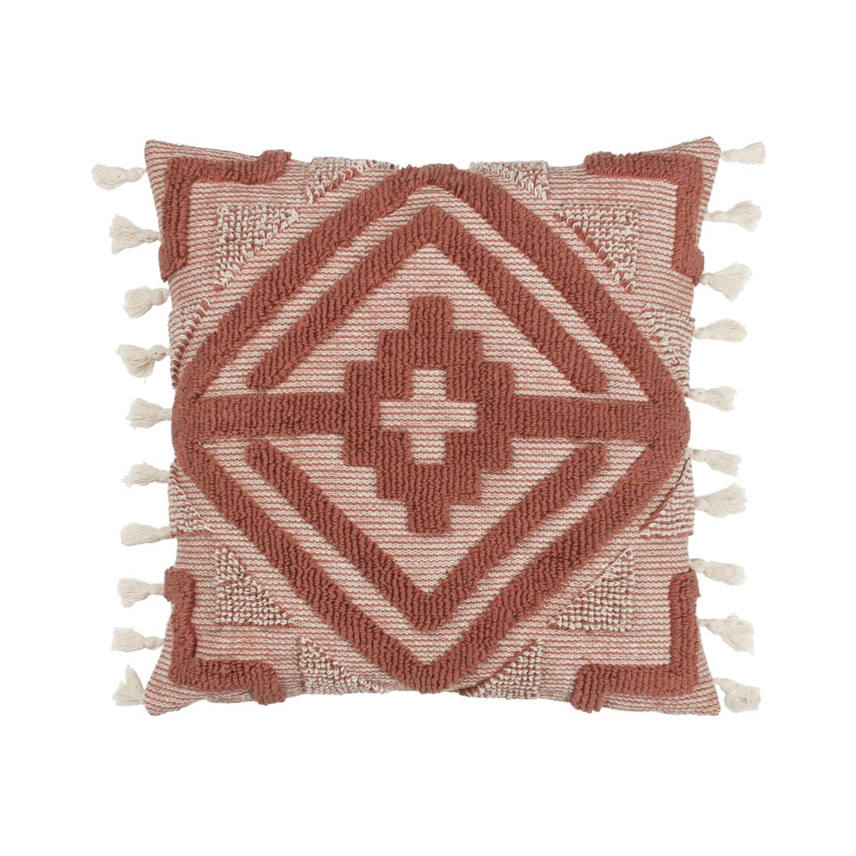 I really like this cushion - it’s a great way to add texture and a touch of colour to both contemporary and bohemian interiors. The geometric pattern and brick hue are versatile, working particularly well with neutral palettes or contrasting with darker shades for a statement look. It’s perfect for pairing on a sofa in a cosy living room or styling as an accent piece on a bed. To stay practical, consider mixing it with other cushions of different sizes and textures for a layered, inviting feel. Its tassels add a playful detail that makes it stand out without overwhelming the rest of the décor.