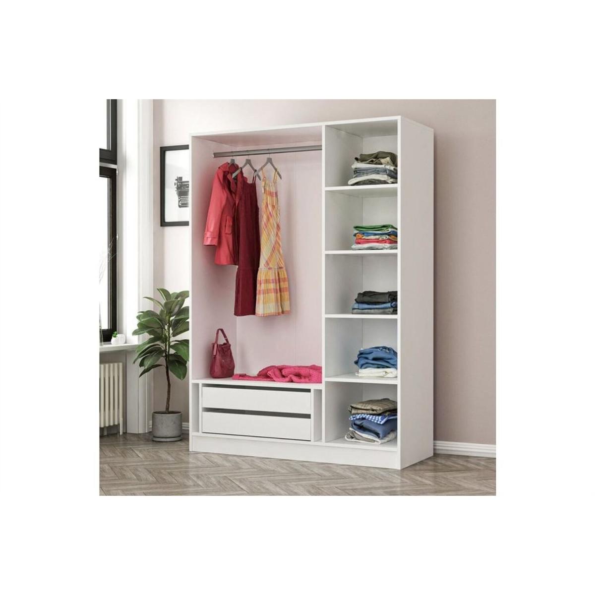 This functional wardrobe will provide the perfect fit to your storage needs with its dimensions and diligent interior design. Complete your bedroom, children room or guest room space with this armoire closet and keep all clothing organized in style. It is made to last longer and very sturdy. You will use it for many years without any wear and tear. This 3 doors wardrobe Includes 5 fixed shelves, 1 aluminum hanging rod and 2 drawers.