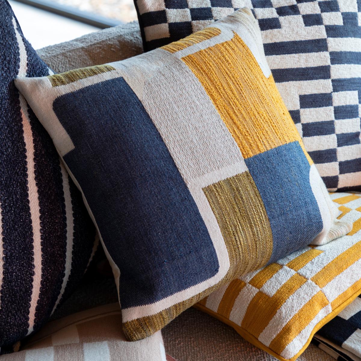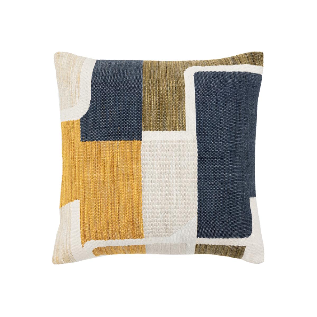 Add a pop of mid-century charm to your space with the Kaleido Cushion. Featuring a striking mix of yellow, navy and cream geometric shapes, this cushion brings bold design and timeless style to any room.