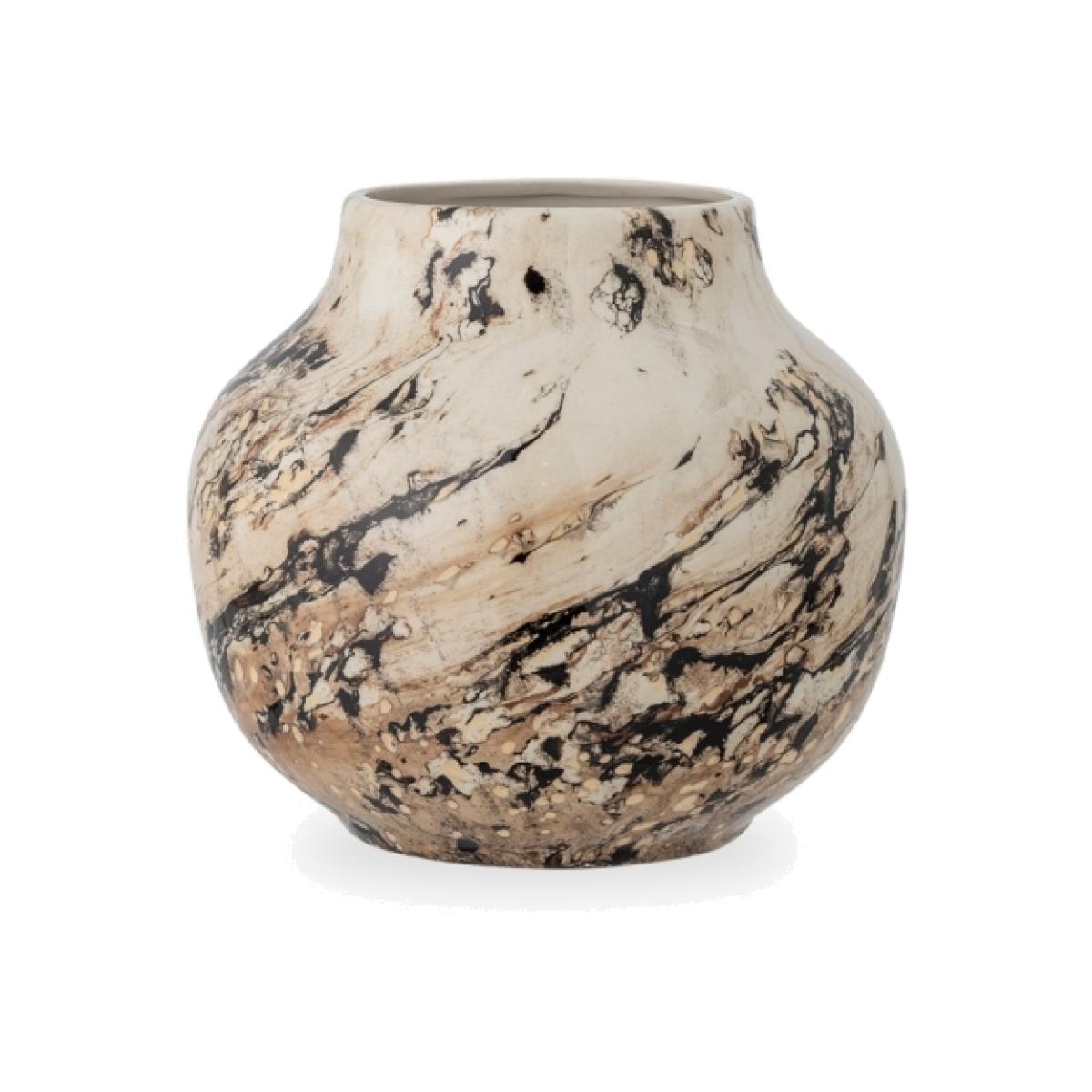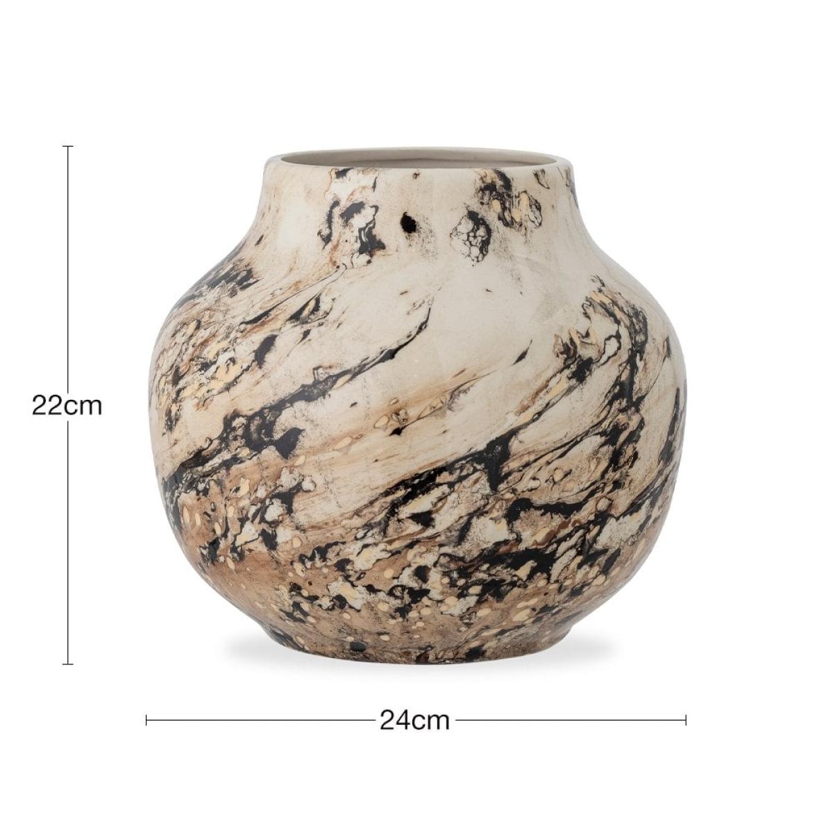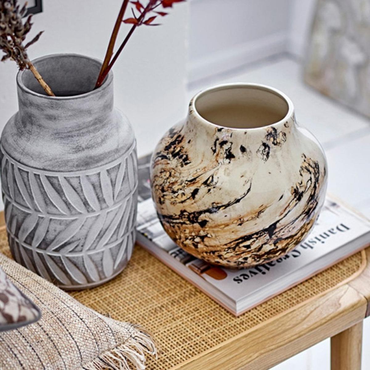 Our Kali Stoneware Vase has a beautiful marble effect glaze with each piece handmade and unique to you. This beautiful vase is a perfect way to add a little life to any room and is a great decorative piece on its own or filled with bright flowers. Home decor made from stoneware and ceramics are highly durable with a very long lifecycle that uses zero toxic materials in the process, making it sustainably-preferred when searching for the perfect pieces for your space. Please note: This is a stoneware vase which makes each piece unique to you. There may be small variations in size, shape, and colour due to the nature of the finish and material.