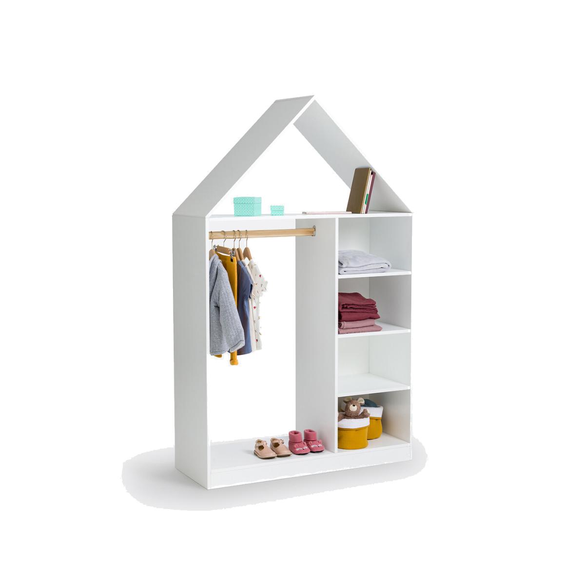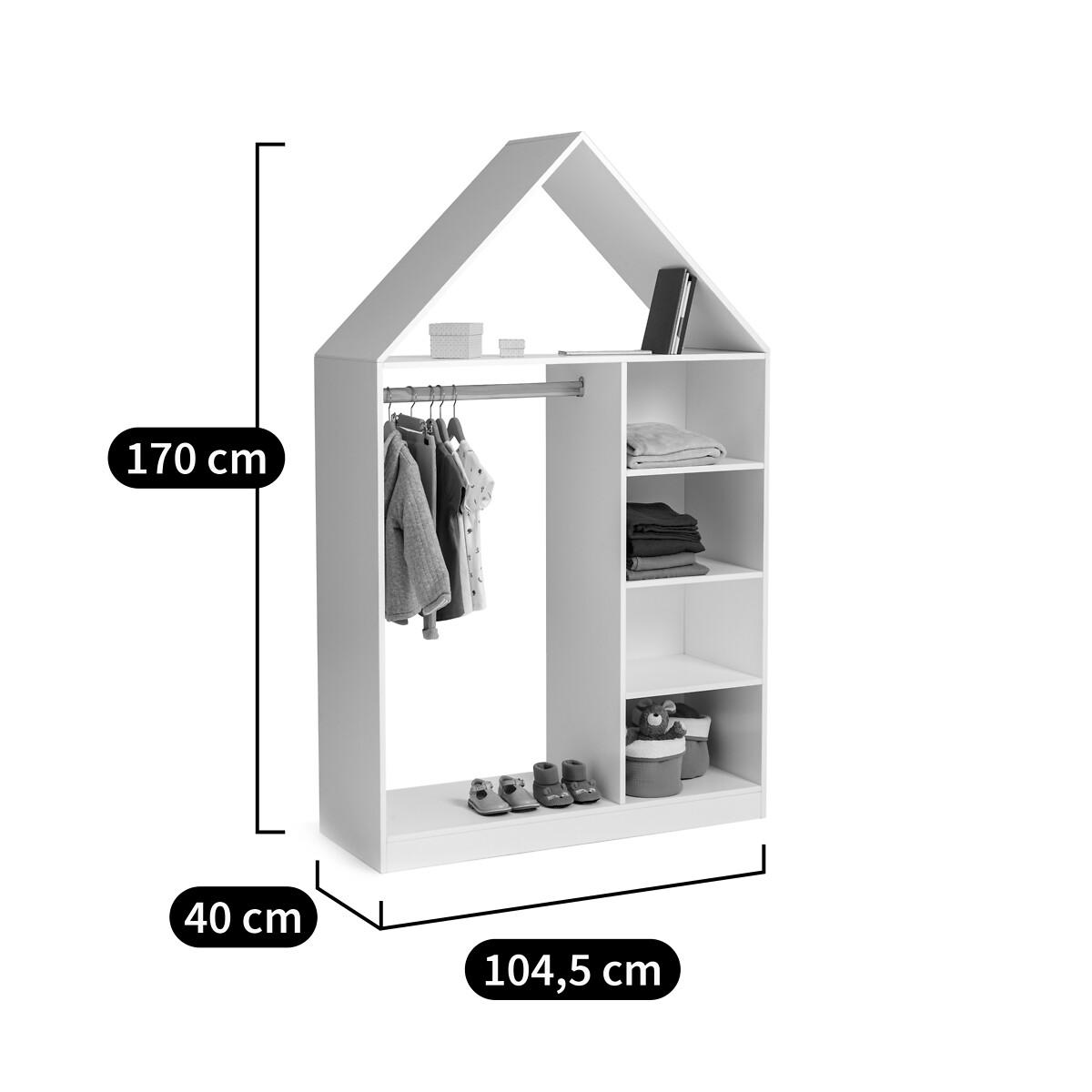 I love this house-shaped wardrobe for its playful yet practical design-perfect for adding character to a child's room while staying functional. It works beautifully in modern, Scandinavian, or eclectic interiors where clean lines and simple aesthetics shine. Practical styling tips include pairing it with colourful storage bins or baskets to encourage organisation, and using it as a focal point to display favourite toys or books. Its open shelving and hanging space are highly versatile, making it ideal for smaller rooms or shared spaces, keeping everything within easy reach for little ones. Overall, it's a charming and functional piece that grows with your child's needs.