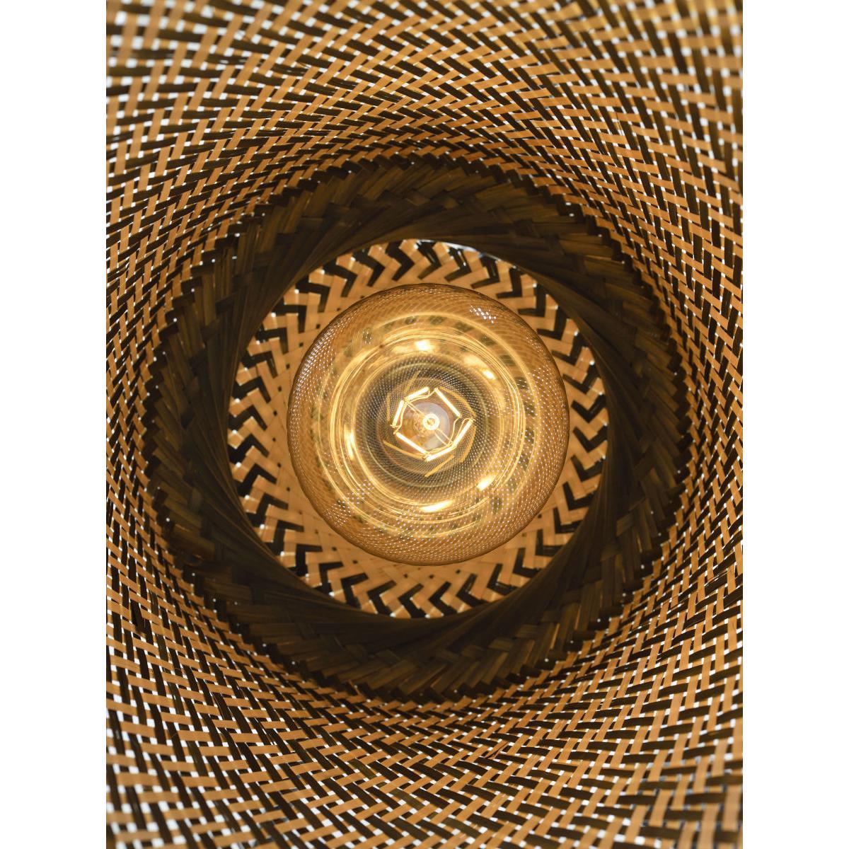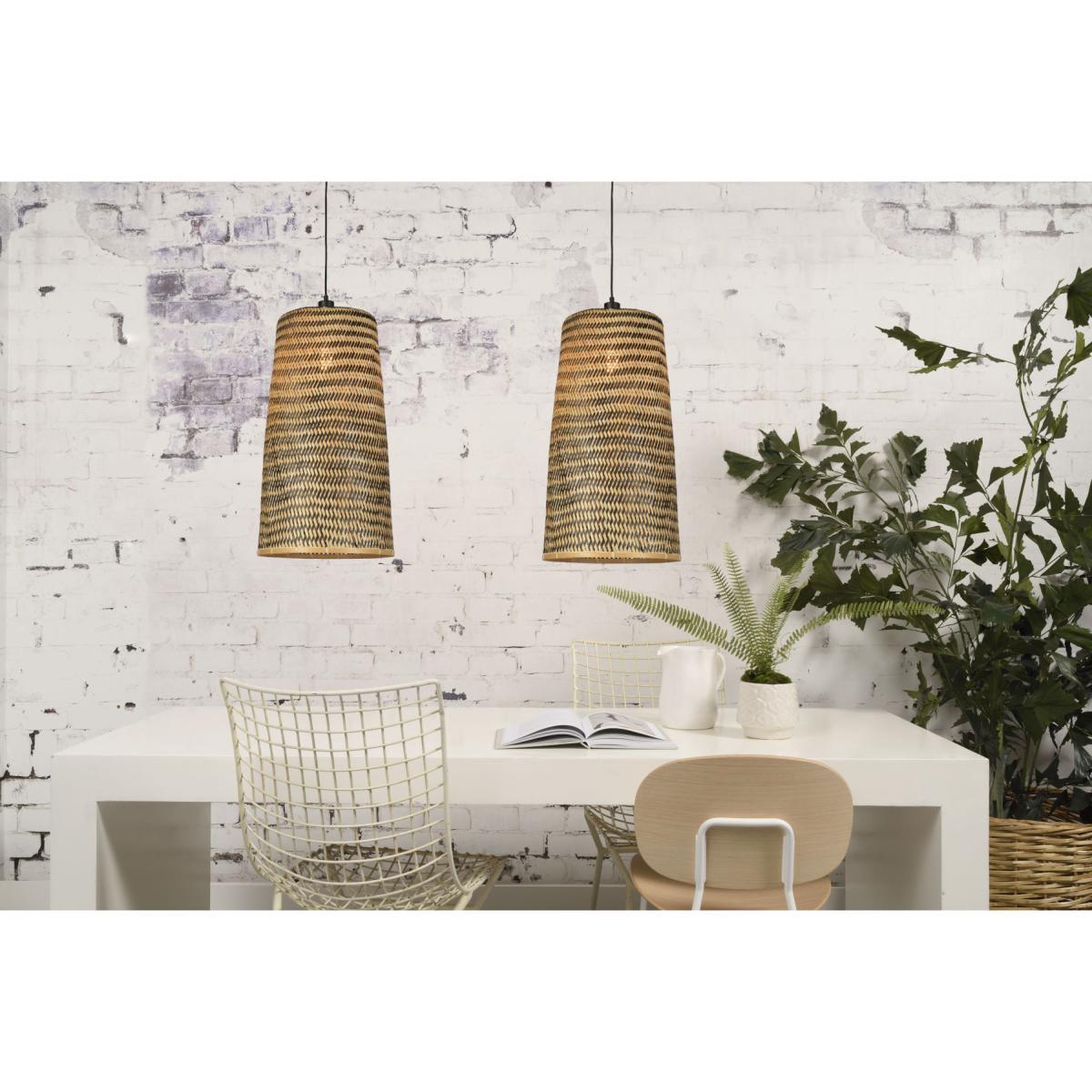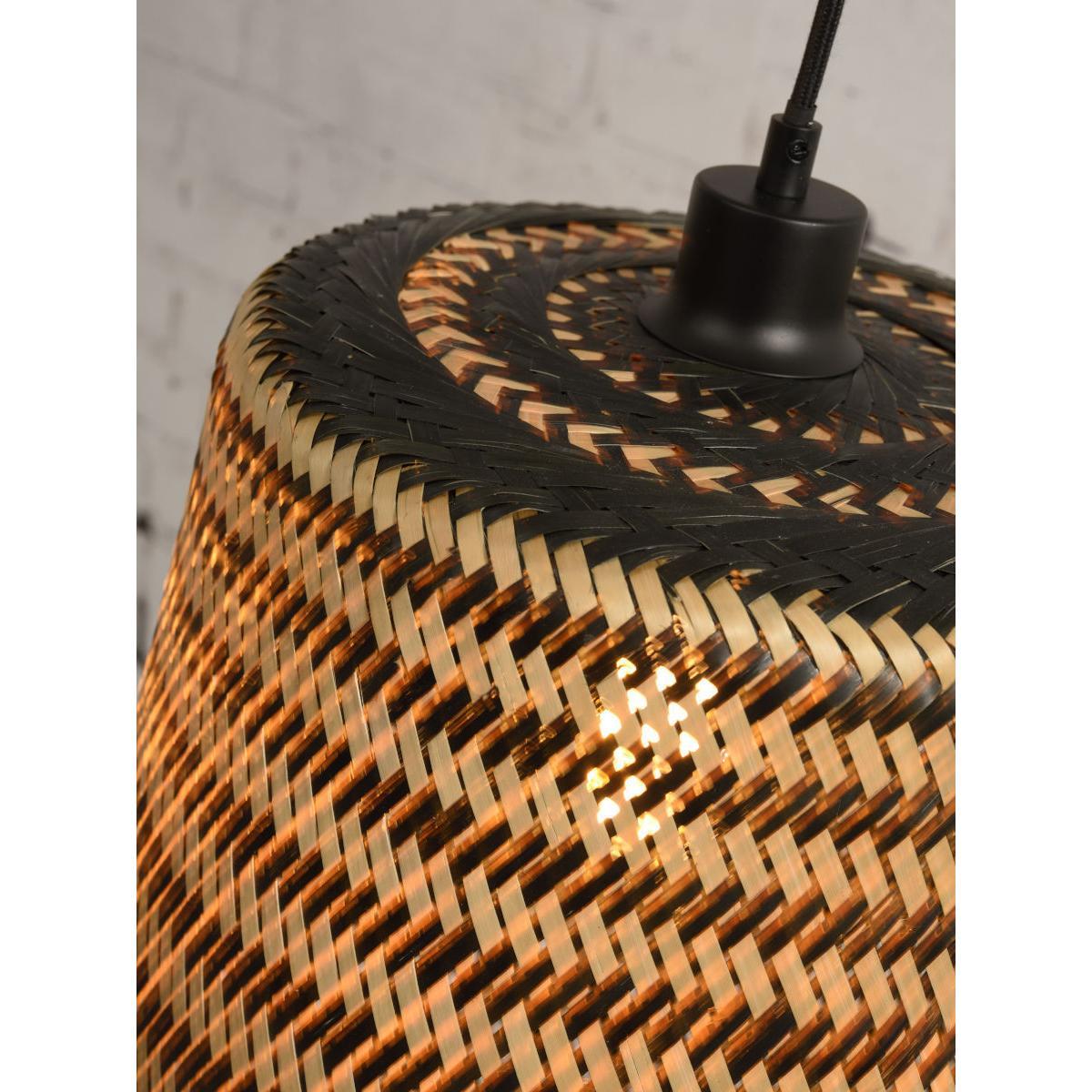 The GOOD&MOJO collection is made up of eco-friendly lighting fixtures made entirely from sustainable and/or recycled materials. A bohemian style for this pendant handmade in Vietnam from braided bamboo stems. Kalimantan skilfully combines natural material and contemporary design in a very on-trend ethnic chic spirit. This pendant has a two-tone finish. The geometric patterns highlighted by the black colour add a graphic, modern dimension. Kalimantan has a really light visual appearance thanks to its openwork structure. The bamboo strips cast delicate shadows over the walls. Each item is a real technical challenge, an example of exceptional craftsmanship. GOOD&MOJO is also a solidarity initiative, because 5% of the sale price of each light fixture purchased is donated to the Waka Waka Foundation. This foundation, based in the Netherlands, distributes solar lamps for people located in crisis areas, in close collaboration with humanitarian organisations.