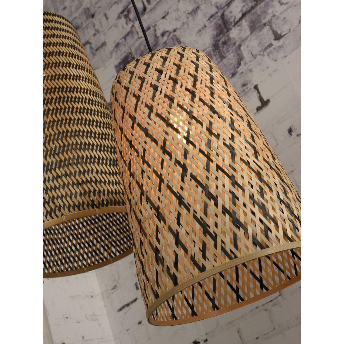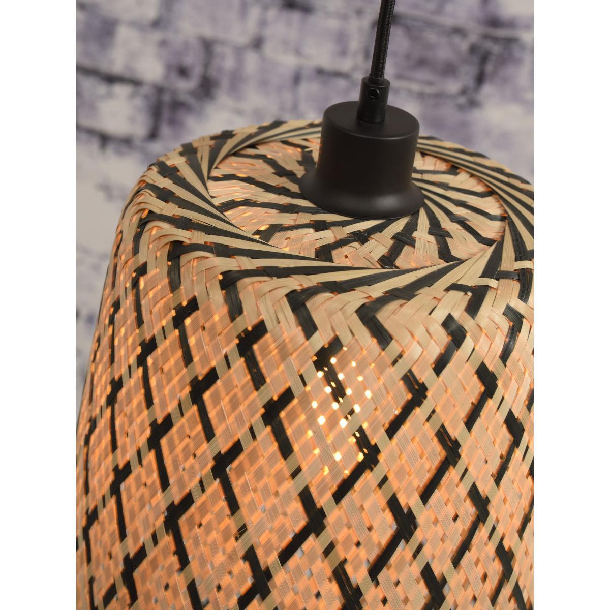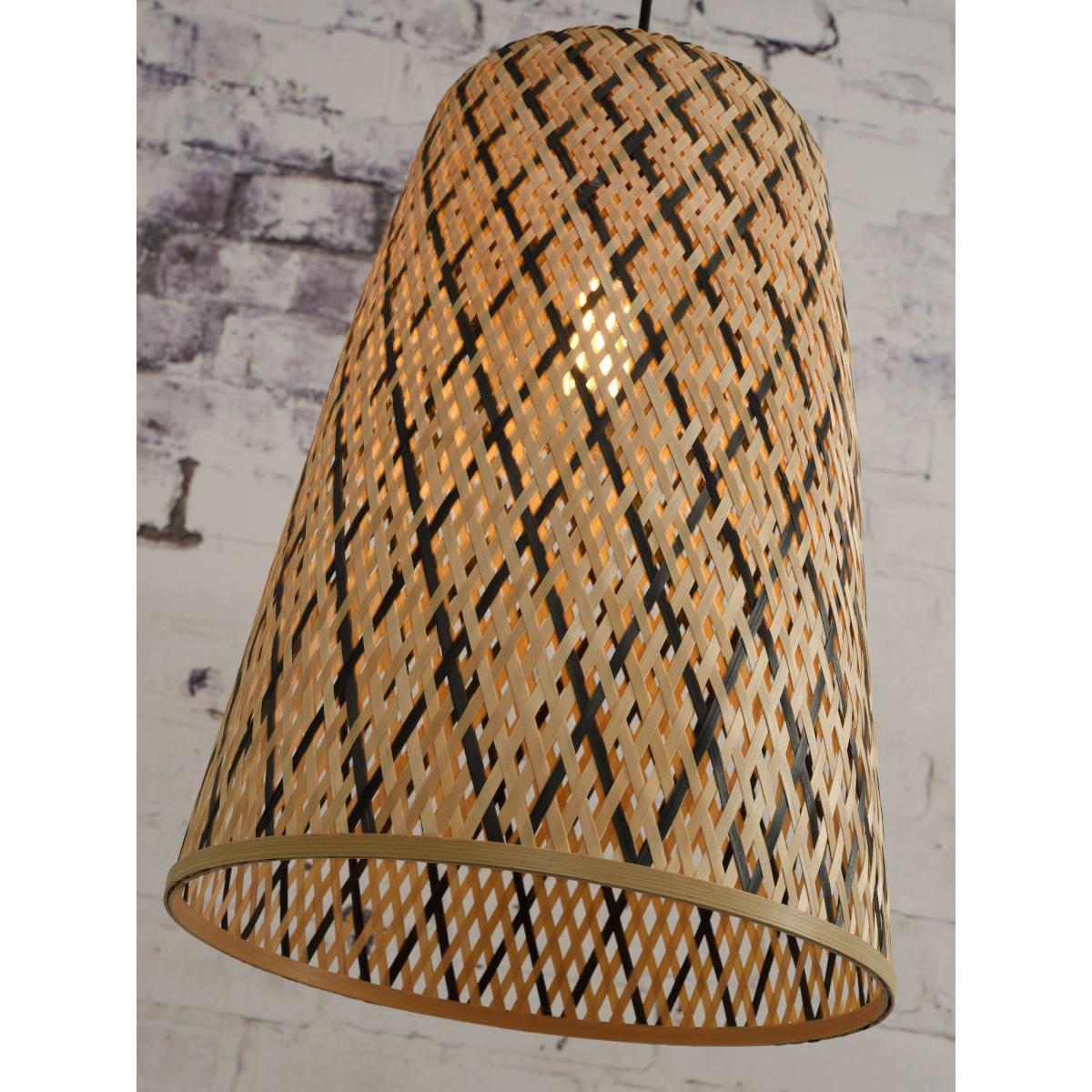 The GOOD&MOJO collection is made up of eco-friendly lighting fixtures made entirely from sustainable and/or recycled materials. A bohemian style for this pendant handmade in Vietnam from braided bamboo stems. Kalimantan skilfully combines natural material and contemporary design in a very on-trend ethnic chic spirit. This pendant has a two-tone finish. The geometric patterns highlighted by the black colour add a graphic, modern dimension. Kalimantan has a really light visual appearance thanks to its openwork structure. The bamboo strips cast delicate shadows over the walls. Each item is a real technical challenge, an example of exceptional craftsmanship. GOOD&MOJO is also a solidarity initiative, because 5% of the sale price of each light fixture purchased is donated to the Waka Waka Foundation. This foundation, based in the Netherlands, distributes solar lamps for people located in crisis areas, in close collaboration with humanitarian organisations.