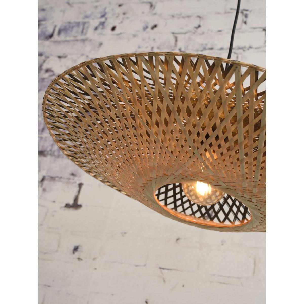 Oozing bohemian style, this Kalimantan wall light skilfully combines natural materials and modern design, in an extremely on-trend, ethnic-chic style. The double-walled lampshade is handmade in Vietnam from woven two-tone bamboo stems: the underside has a natural finish, whilst the topside is black. Each item is a real technical challenge, an example of exceptional craftsmanship. The Kalimantan wall light has an extremely lightweight visual appearance thanks to its openwork structure. The bamboo strips cast delicate shadows over the ceiling. The bamboo arm is jointed with sleek screws with black tabs, adding a subtle yet playful hint that allows for the arm to be adjusted into various positions. This wall light looks perfect positioned next to a sofa, armchair or bed. GOOD&MOJO brings together eco-responsible lighting, composed exclusively from sustainable and/or recycled materials, such as cork, bamboo, ecological linen, glass and recycled car tyres. GOOD&MOJO is also a collection driven by a social cause: For each light purchased, 5% of the sale price is donated to the Waka Waka foundation. This foundation, based in the Netherlands, distributes solar lamps to people in crisis areas, in close collaboration with humanitarian aid organisations. On top of this, for every lamp purchased, a tree is planted! GOOD&MOJO has also partnered with Eden Reforestation Projects, which is working to plant trees in Nepal, Madagascar, Haiti, Indonesia, Mozambique and Kenu, to restore forests and woodlands and to reduce extreme poverty by creating jobs for local villages.