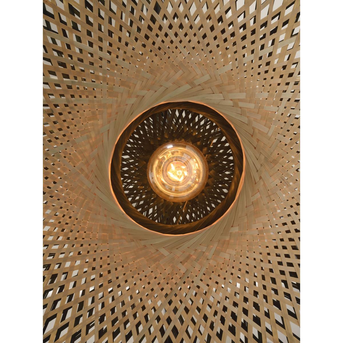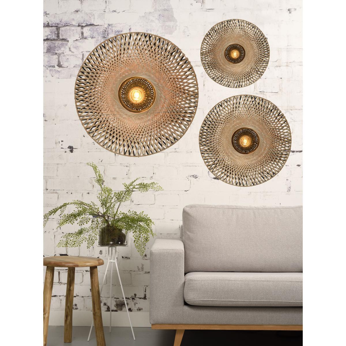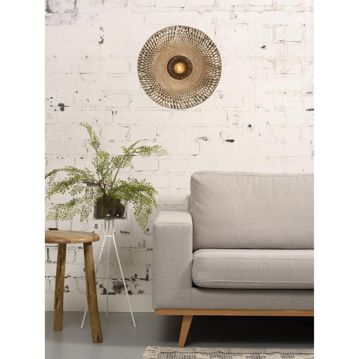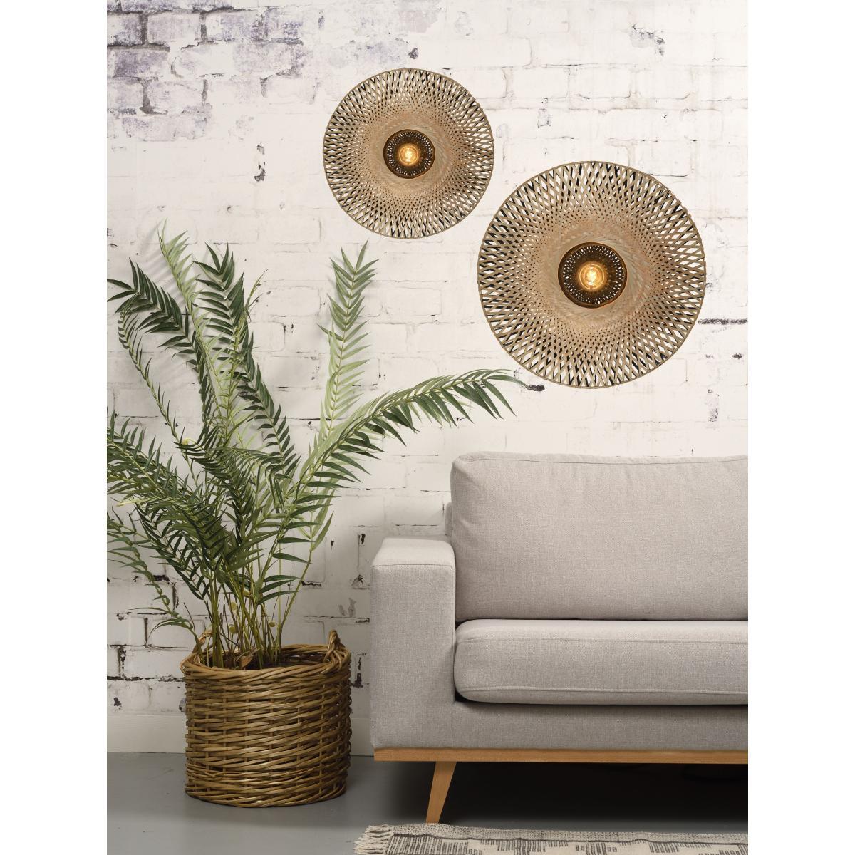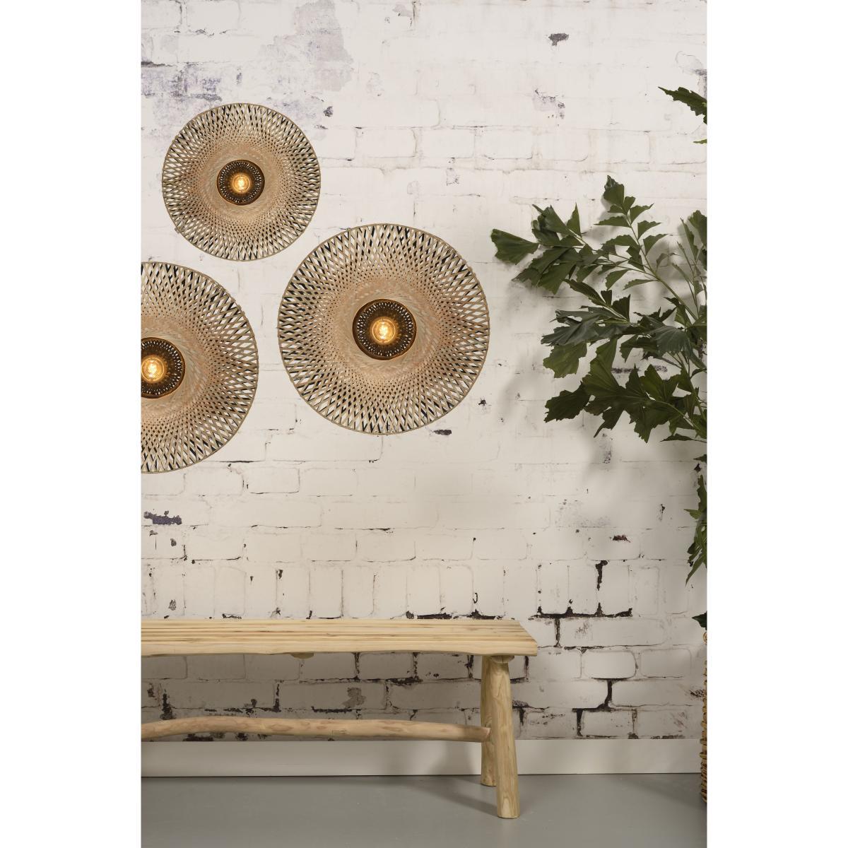 The GOOD&MOJO collection is made up of eco-friendly lights made only of sustainable and/or recycled materials. A bohemian style for this wall lamp with its light silhouette. The double-walled lampshade is handmade in Vietnam from braided bamboo stems. Kalimantan skilfully combines natural material and contemporary design in a very on-trend chic ethnic spirit. This wall lamp has a two-tone finish. The front part is made of natural bamboo, while the black finish on the back gives a graphic touch to the light. Kalimantan has great visual lightness due to its openwork structure. The bamboo strips cast delicate shadows over the walls. Each item is a real technical challenge, an example of exceptional craftsmanship. GOOD&MOJO is also a solidarity collection, because 5% of the sale price of each light fixture purchased is donated to the Waka Waka Foundation. This foundation, based in the Netherlands, distributes solar lamps for people in crisis areas, in close collaboration with humanitarian aid organisations.