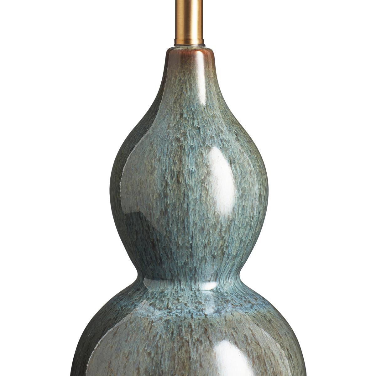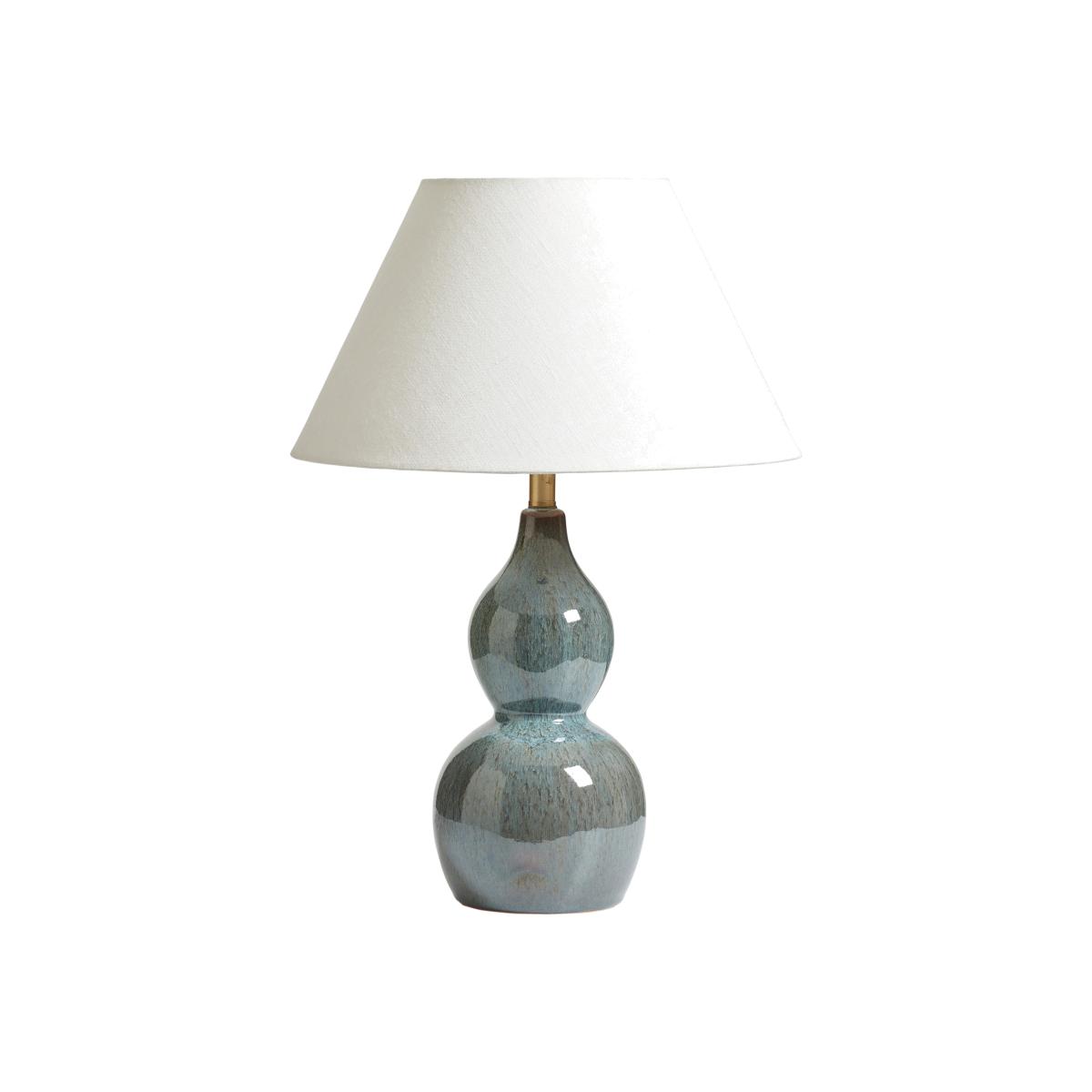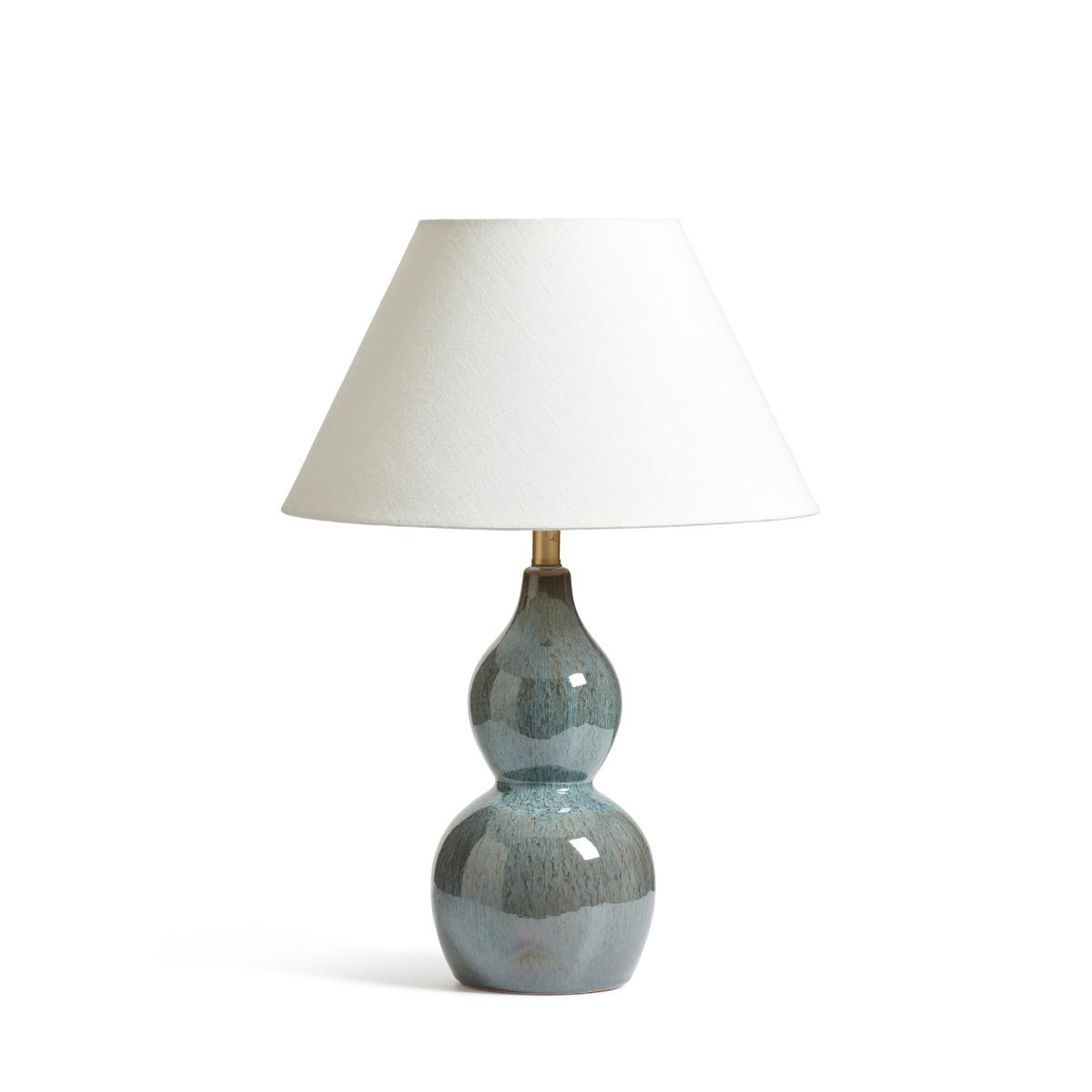 Our Kalinda emulates the curving shape of our popular Hulu Table Lamp, scaled down to create a more compact form. Its pleasing petite silhouette suits smaller surfaces, such as bedside tables or office desks. The ceramic lamp is handmade and finished in a beautiful Celadon blue glaze.