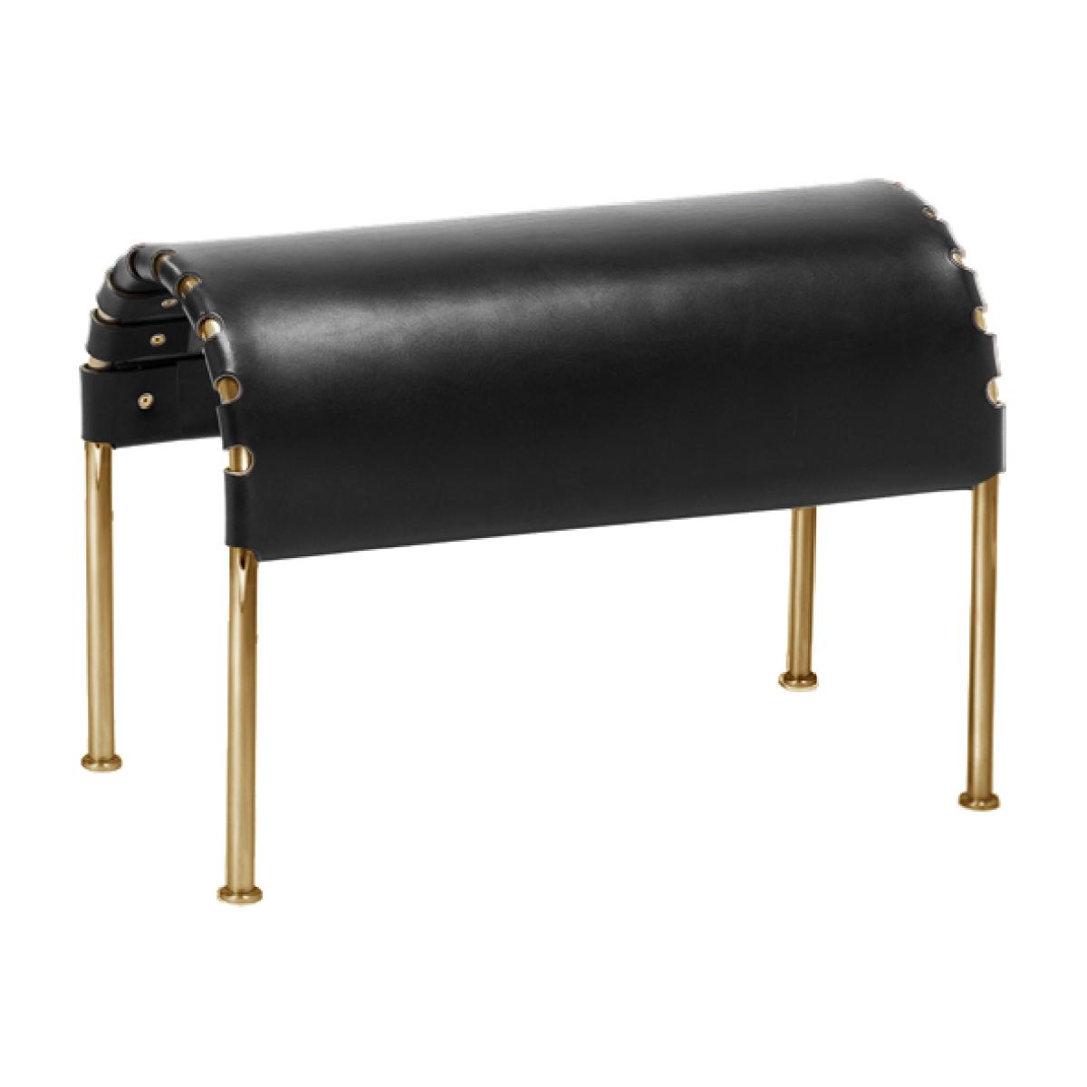 You always sit a little better in an armchair when there is a footstool to let your legs rest on. The Bruno footstool has a metal frame upholstered in studded core leather.