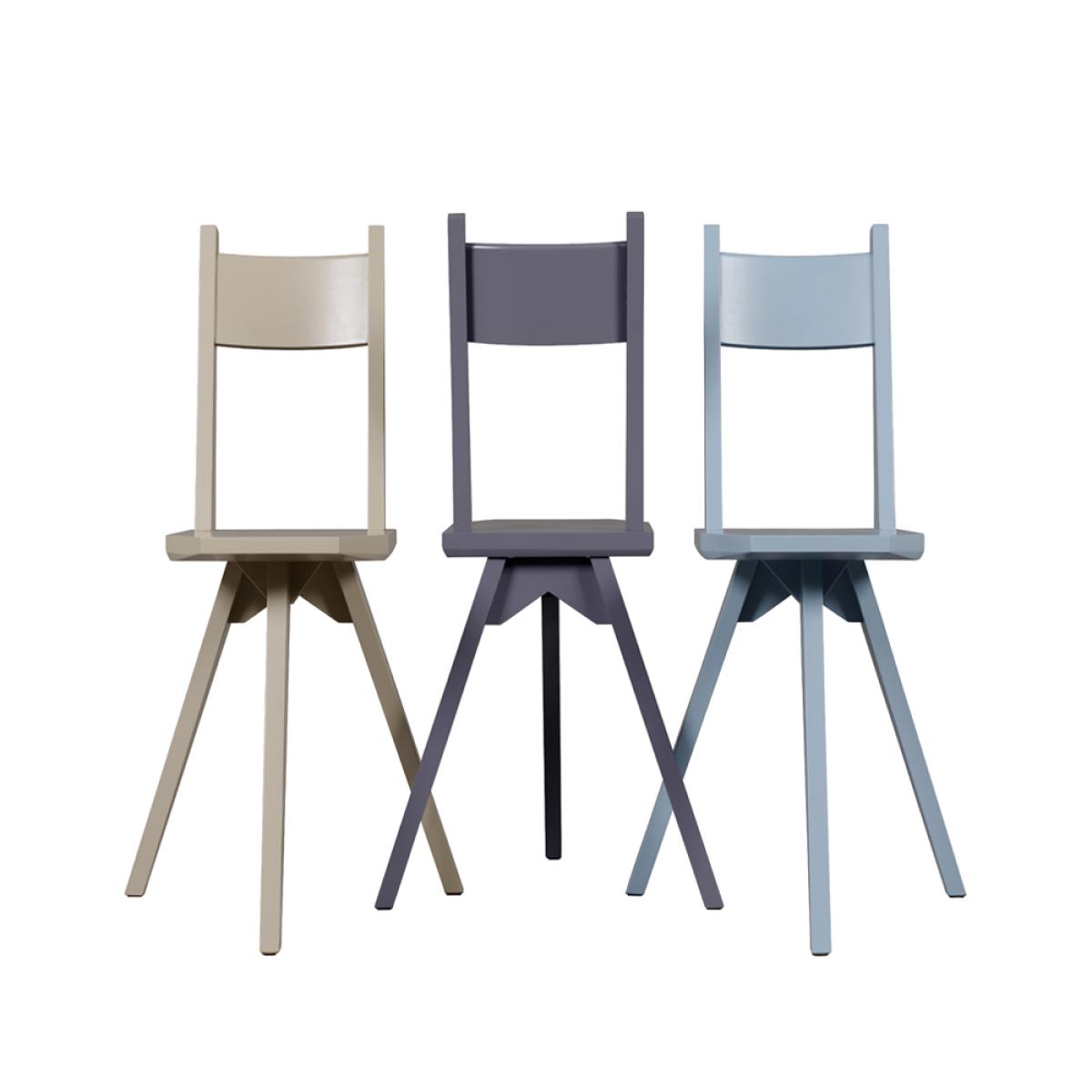 The Camilla chair, a handy three-legged chair designed by John Kandell from 1982, is available in several colors and is perfect for small spaces.