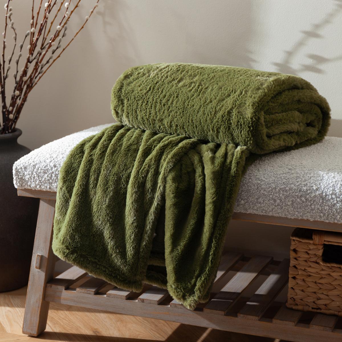 Kallu Double-Sided Faux-Fur Throw - Olive / 200cm
