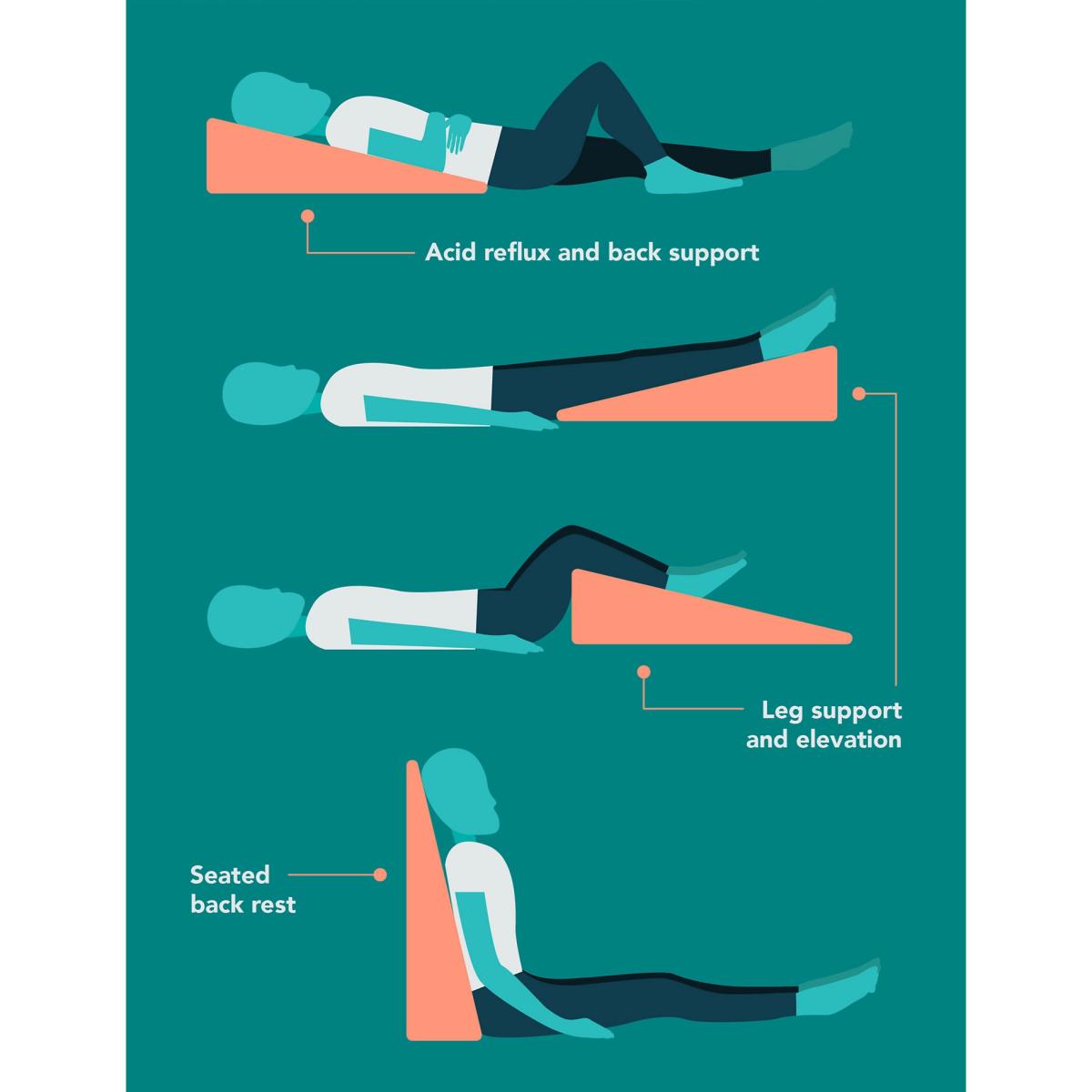 Does heartburn or acid reflux prevent you or someone you love from achieving a comfortable night’s sleep? The Kally Acid Reflux Wedge Pillow is specially designed to reduce symptoms of heartburn and acid reflux to ensure a restful night’s sleep. The angled wedge shape elevates the upper half of your body, using gravity to prevent uncomfortable symptoms of acid reflux which occur when acid leaks out of the stomach. Also provides relief from GERD, GORD, Laryngopharyngeal Reflux (LPR) and similar medical conditions. The pillow’s versatile design allows for both steep and shallow support angles that can also be used for back and leg support. A smooth quilted fabric creates a soft, breathable outer with anti-allergy treated fibres swaddled inside to protect against bacteria.