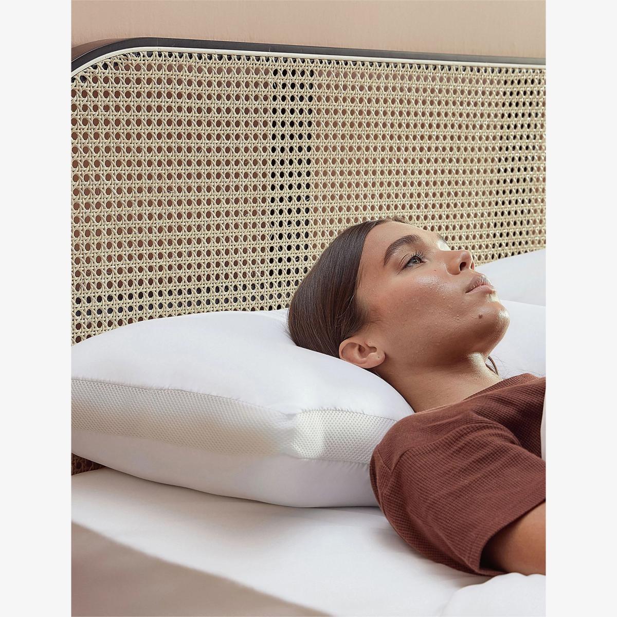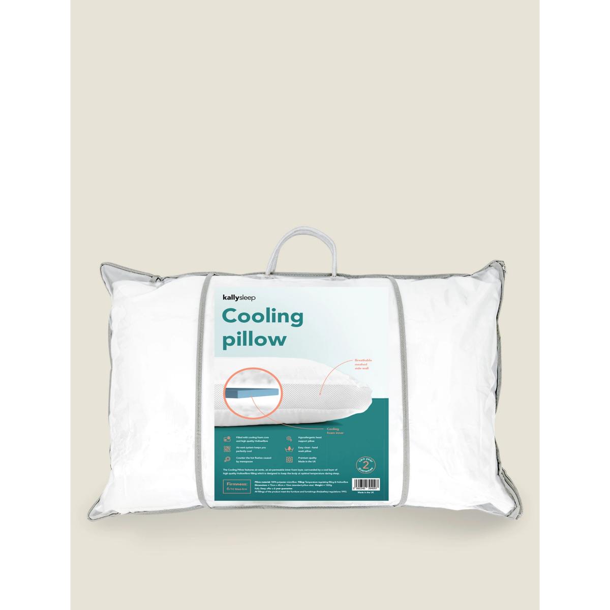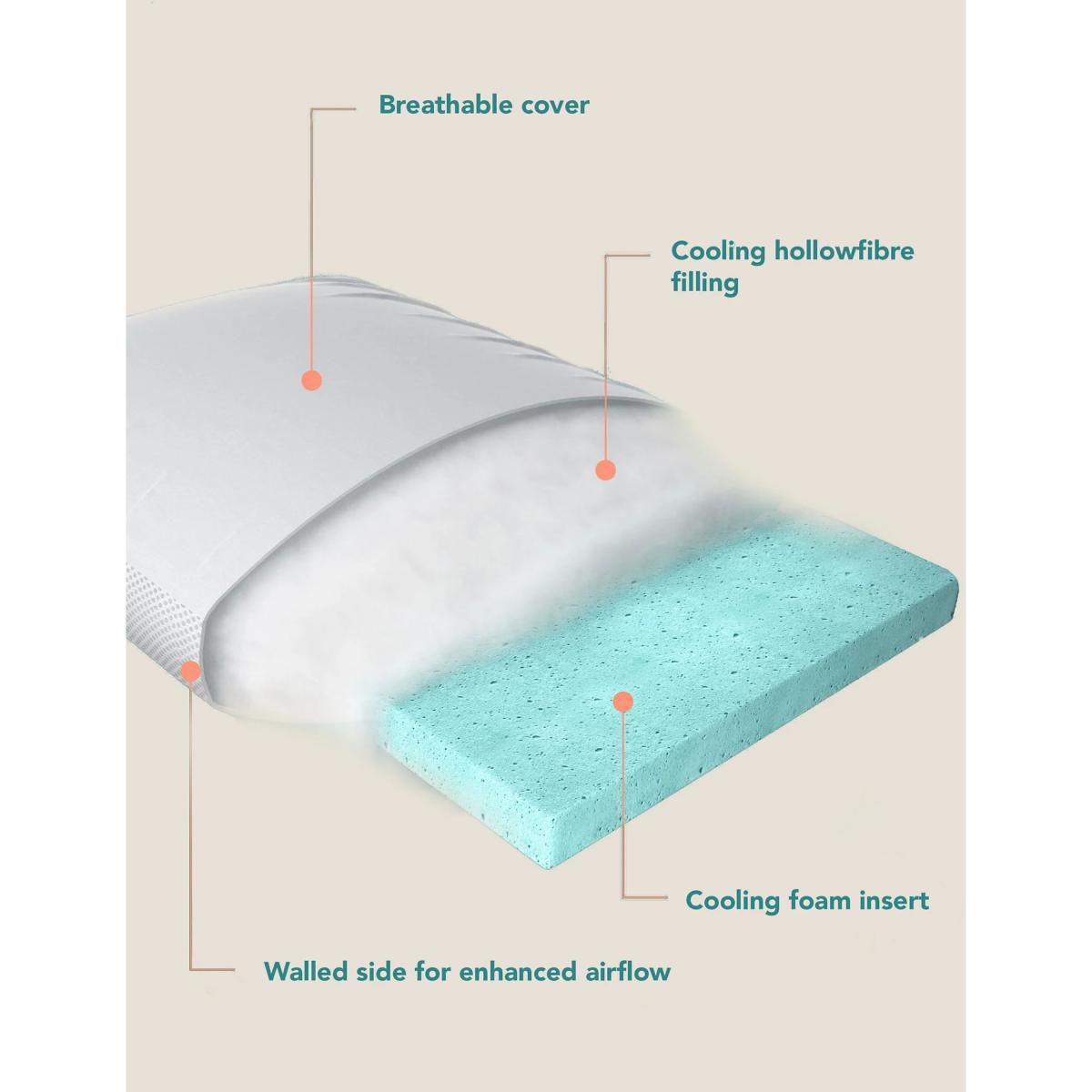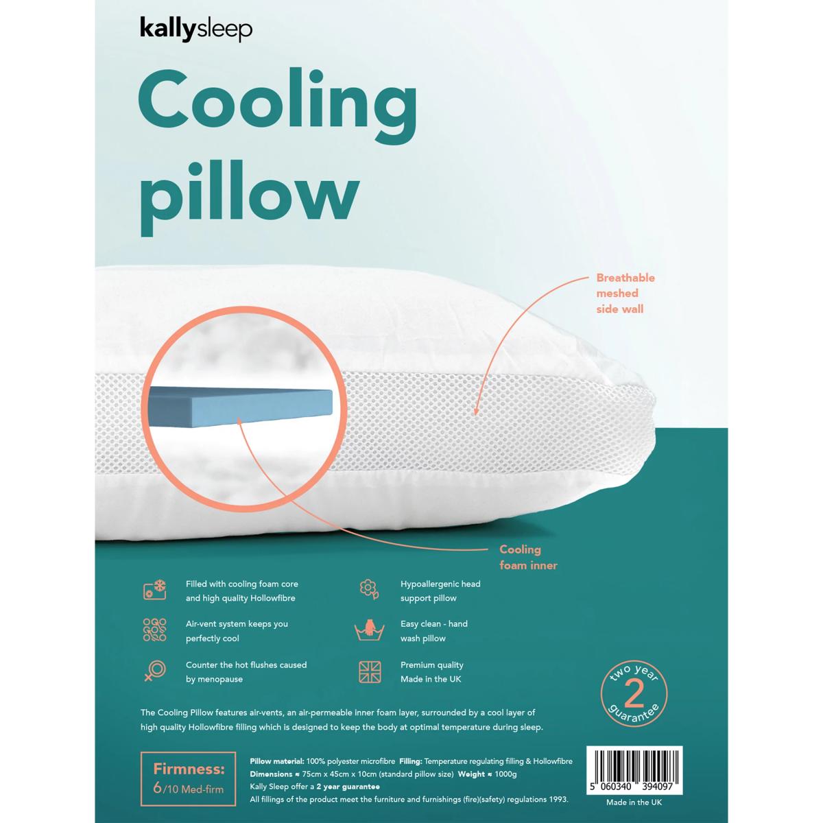 Stay cool at night with this cooling pillow from Kally Sleep. The pillow combines an air-permeable inner air vent with a cool layer of hypoallergenic hollowfibre filling. The lightweight cover absorbs minimal heat whilst its advanced foam core technology regulates surface temperature. The elastic inner-foam layer affords flexibility, moulding with your head and neck to ensure natural spine alignment. This pillow is perfect for back & side sleepers.