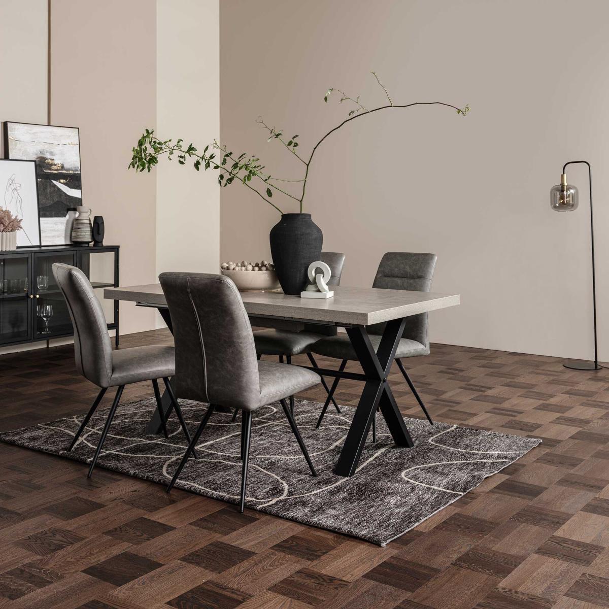 Table: Engineered Wood With A Melamine Concrete Finish Table Top, Offering A Versatile Design. Ensuring Durability, And Easy Maintenance, Providing A Stylish And Practical Choice For Your Dining Space. Kalmer Extending Dining Table & 4 Pauli Chairs, Grey | Barker & Stonehouse
