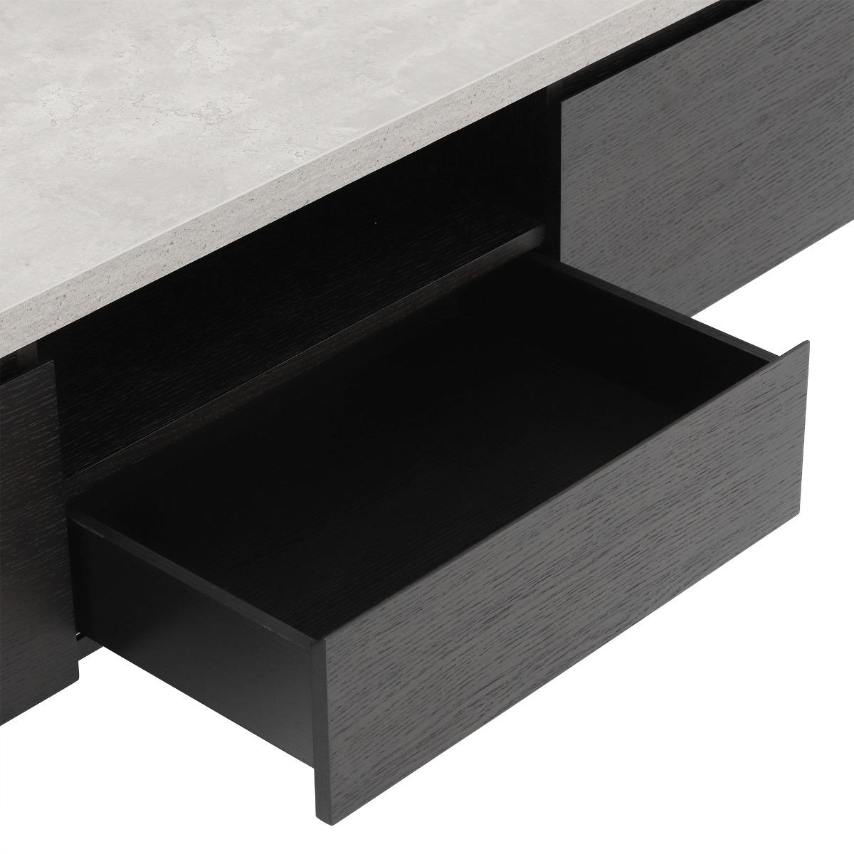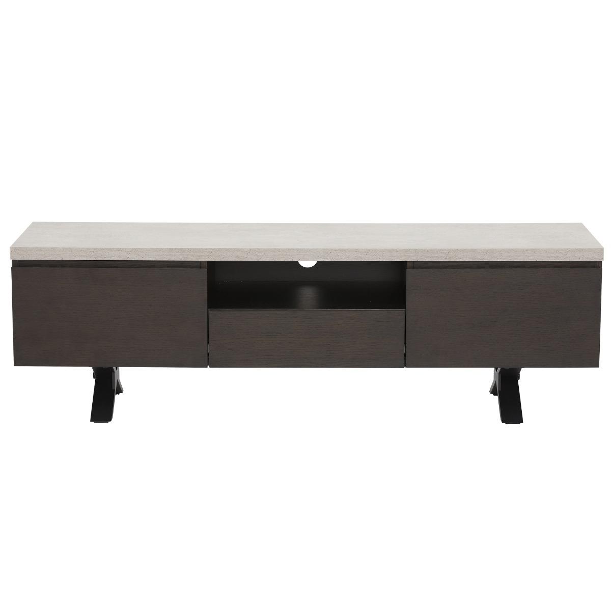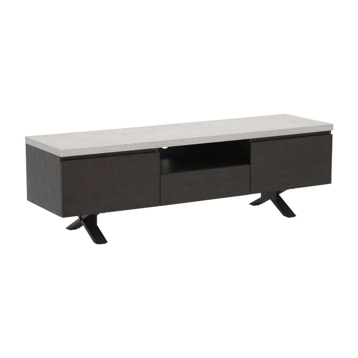 Design. Bring modern influence into your living room with the Kalmer TV Stand, boasting rich chocolate tones and a concrete surface. Featuring three sizeable drawers, this media unit is the perfect place to organise your router, DVD’s, consoles and more. Kalmer’s sleek, sophisticated design is achieved by replacing handles with grooves for easy opening, and a smooth contemporary finish.