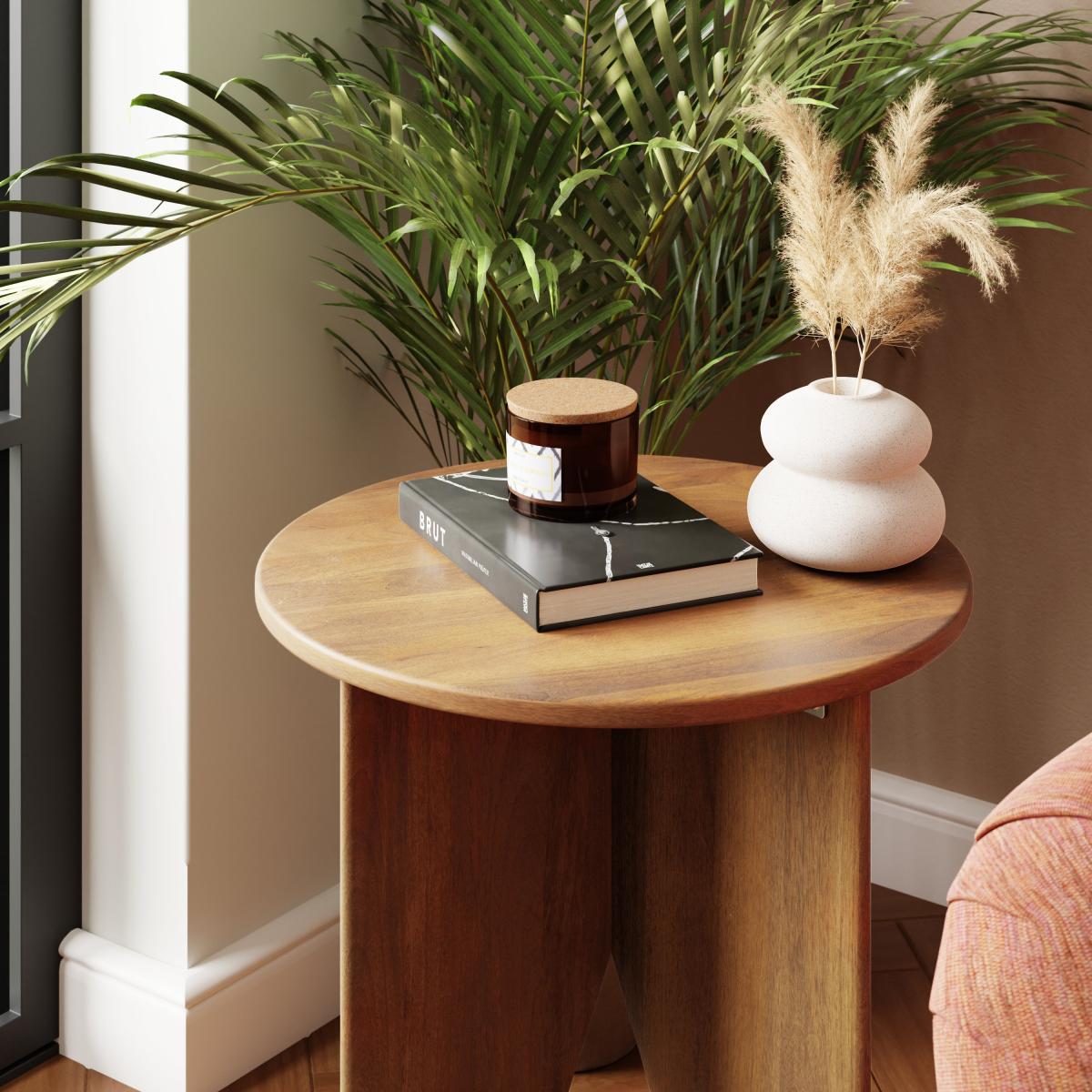 I love this side table for its versatility and natural warmth, making it an excellent addition to both contemporary and Scandinavian-inspired interiors. The mango wood finish brings a light, organic feel that pairs well with neutral palettes or muted tones. It works particularly well next to sofas or beds, serving as a practical surface for books, lighting, or decorative accents like vases or candles. For styling tips, consider layering a couple of books or a small tray to keep things organised, and add a small plant or vase for an effortless, lived-in look. Its subtle craftsmanship makes it a perfect piece to complement various decor styles without overpowering the space.