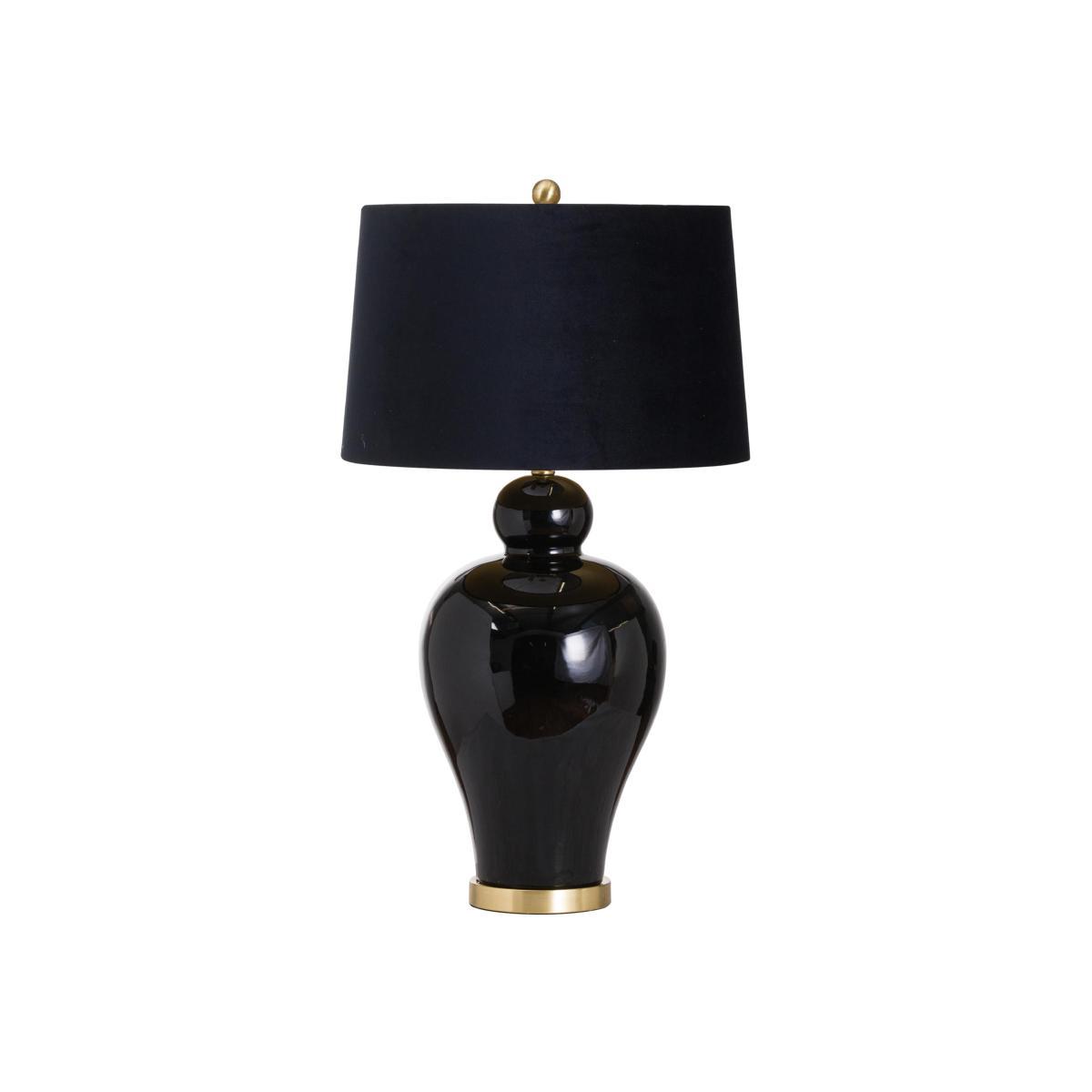 This bold, black table lamp has a timeless, classic silhouette that’s equally striking in traditional and contemporary interiors. We love its luxe black velvet shade and elegant gold detailing. Why you’ll love it. Sleek, sophisticated black table lamp. Classic silhouette. Luxurious black velvet shade. Black coloured vase base. Elegant gold detailing. What you need to know. Tapered drum shade. Black ceramic glass base. Round gold finish steel plinth and detailing. E27 bulb (not included). Dimensions. Width: 63cm (24.8 inches). Depth: 40cm (15.7 inches). Height: 40cm (15.7 inches).