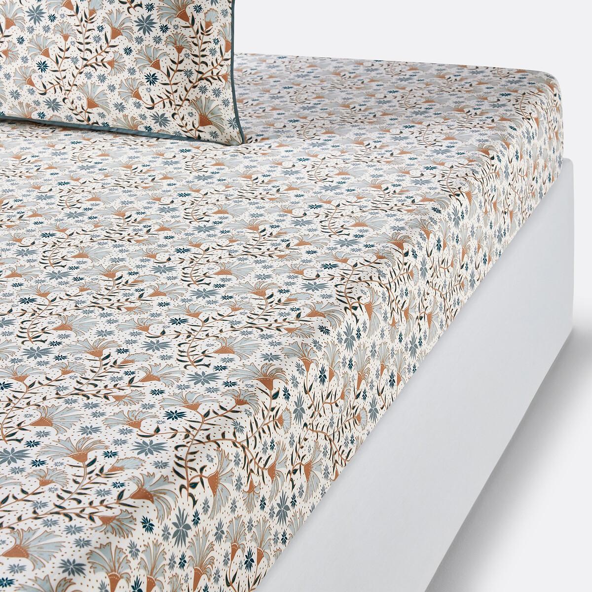 The Kalyan cotton percale fitted sheet. We love the refined Persian-inspired floral print of this fitted sheet made in a beautiful, very soft percale.