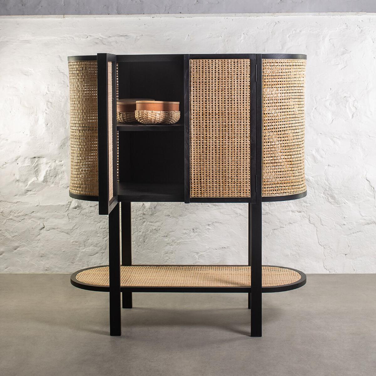 Organise your interior with style thanks to this Aaram cabinet from Kam Ce Kam. Expertly crafted in India from ash wood and available in two colourways, it is finished with a traditional woven cane design. With two internal shelves and additional shelf below for extra storage, this cabinet is perfect for storing away your trinkets, treasures or even your tableware.