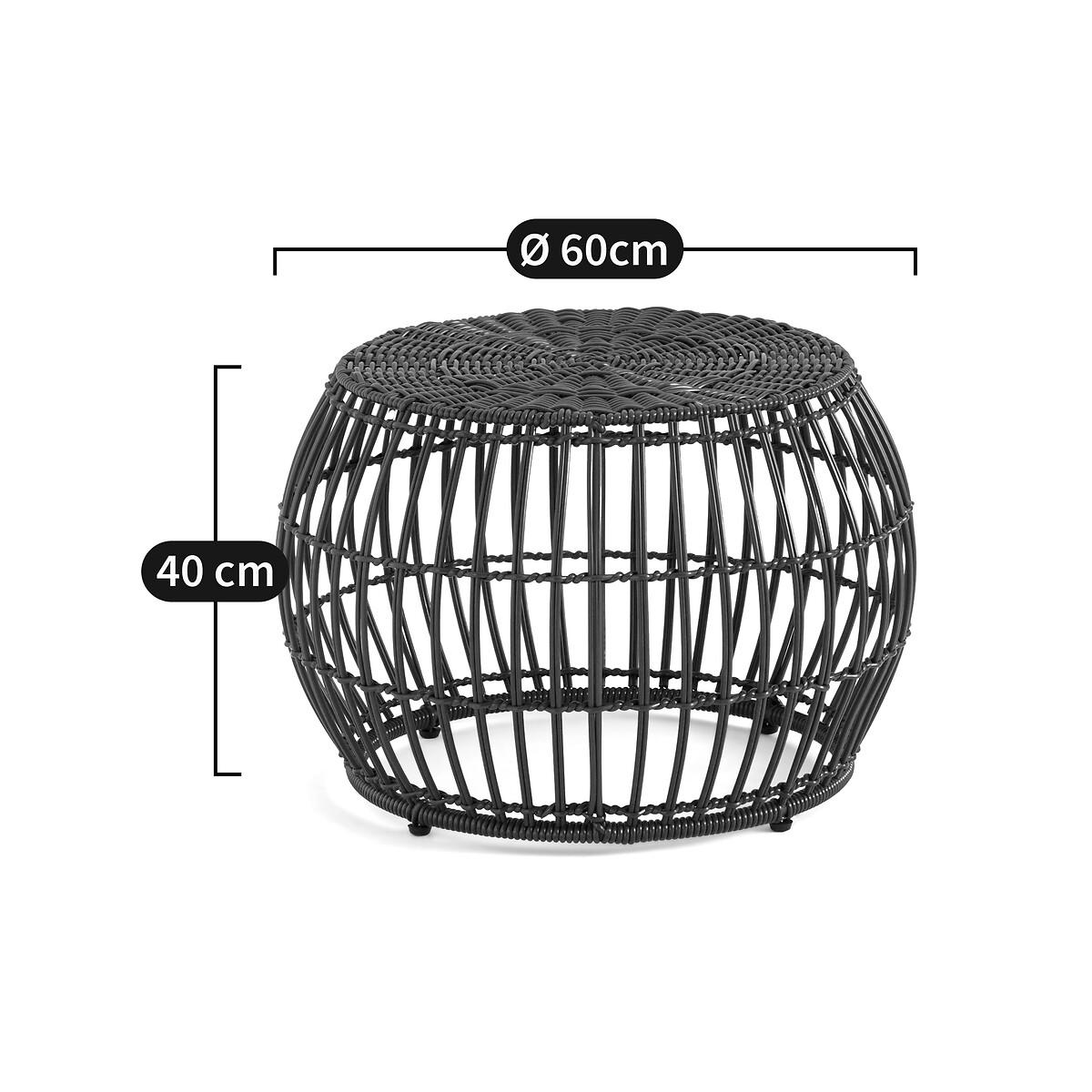Colourful woven resin in a rounded design with a bohemian style: the Kamila coffee table allows you to create a convivial space for entertaining friends in the garden, on a terrace or balcony. You can also use it to place magazines, sunglasses or a cold drink. Decorative and functional. Product Details • In coloured polyester woven resin • Epoxy finished steel structure • 4 height-adjustable black polyurethane glides. Quality Info • The woven resin is resistant to bad weather, temperature variations and UV rays.. Its lifespan will nevertheless depend on its exposure to UV rays, lunar rays and temperature variations. To maintain the braided resin, simply wash it with a soft sponge in soapy water. Dimensions • Overall diameter : 60cm • Shelf diameter: 48cm • Height: 40cm • Weight: 4.2kgDelivery:. Sold pre-assembled. Note! Please check that all access points are large enough to accommodate your delivery (doors, stairs, lifts).Dimensions and weight of parcel1 parcel • L67 x H48 x D67cm. 7kg