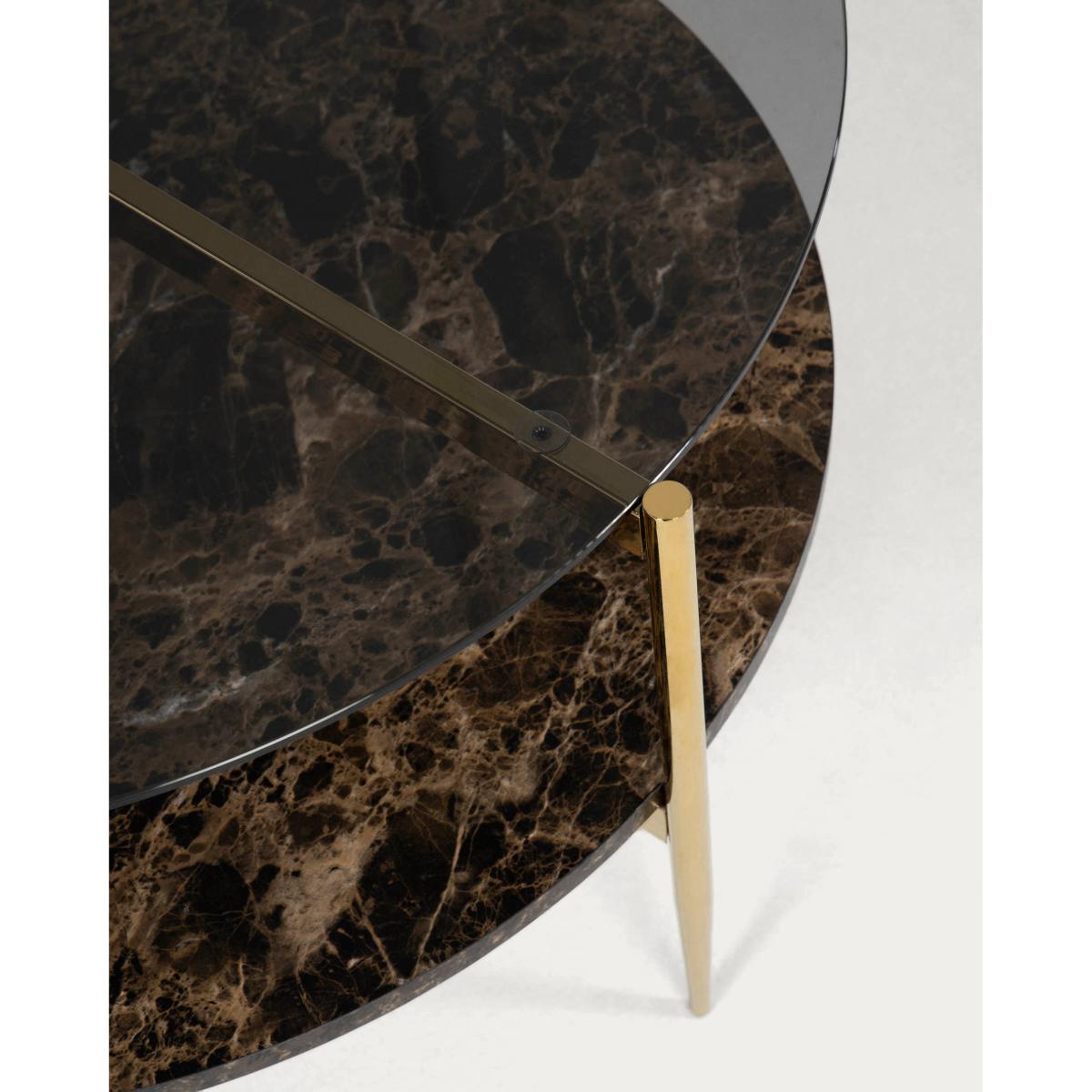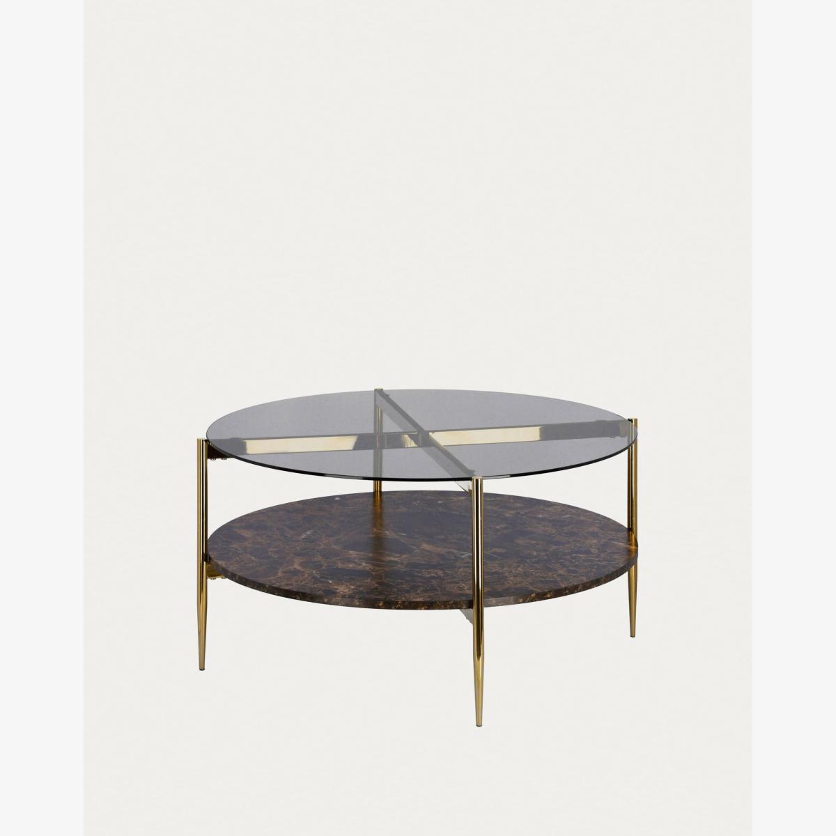 Coffee tables are what make the difference in any living room. The Kamilah table has been designed with a tinted glass top and an under section with marble effect to showcase and keep your essentials. The golden structure gives it the perfect final touch.