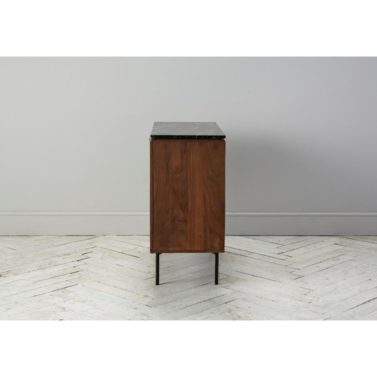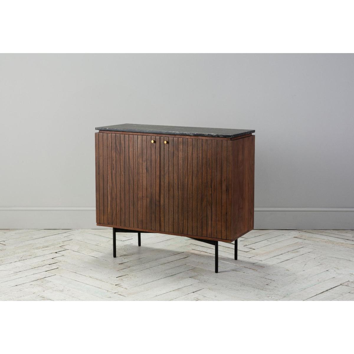 Beauty meets practicality with the Kamsar Acacia and Marble Cabinet , with its straight lined struts, equally matched with luxurious black Indian marble with subtle white veining. This range is perfect for those looking for strength and quality, without compromising on design or that wow factor. Pair this cabinet with the rest of the range , or even go for the non-marble versions to mix things up with all natural acacia wood.
