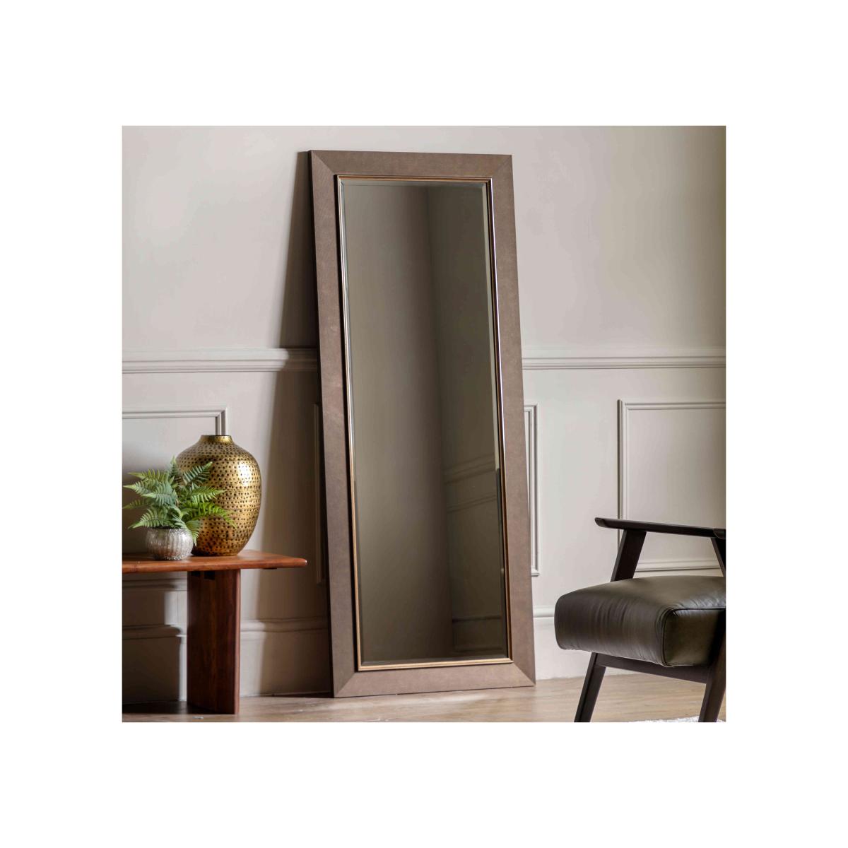 Elevate your home interior with this tall and sophisticated leaner mirror that comes in a choice of timeless bronze or pewter. Why you'll love it Simple yet stunning leaner mirror. Comes in a choice of warm bronze or pewter. Sleek design sure to wow guests. Made with care. What you need to know For indoor use only. Ensure the mirror is secure against the wall to prevent it from tilting forward. Dimensions Height: 167 cm (66 in). Depth: 3 cm (2 in). Width: 67 cm (27 in).