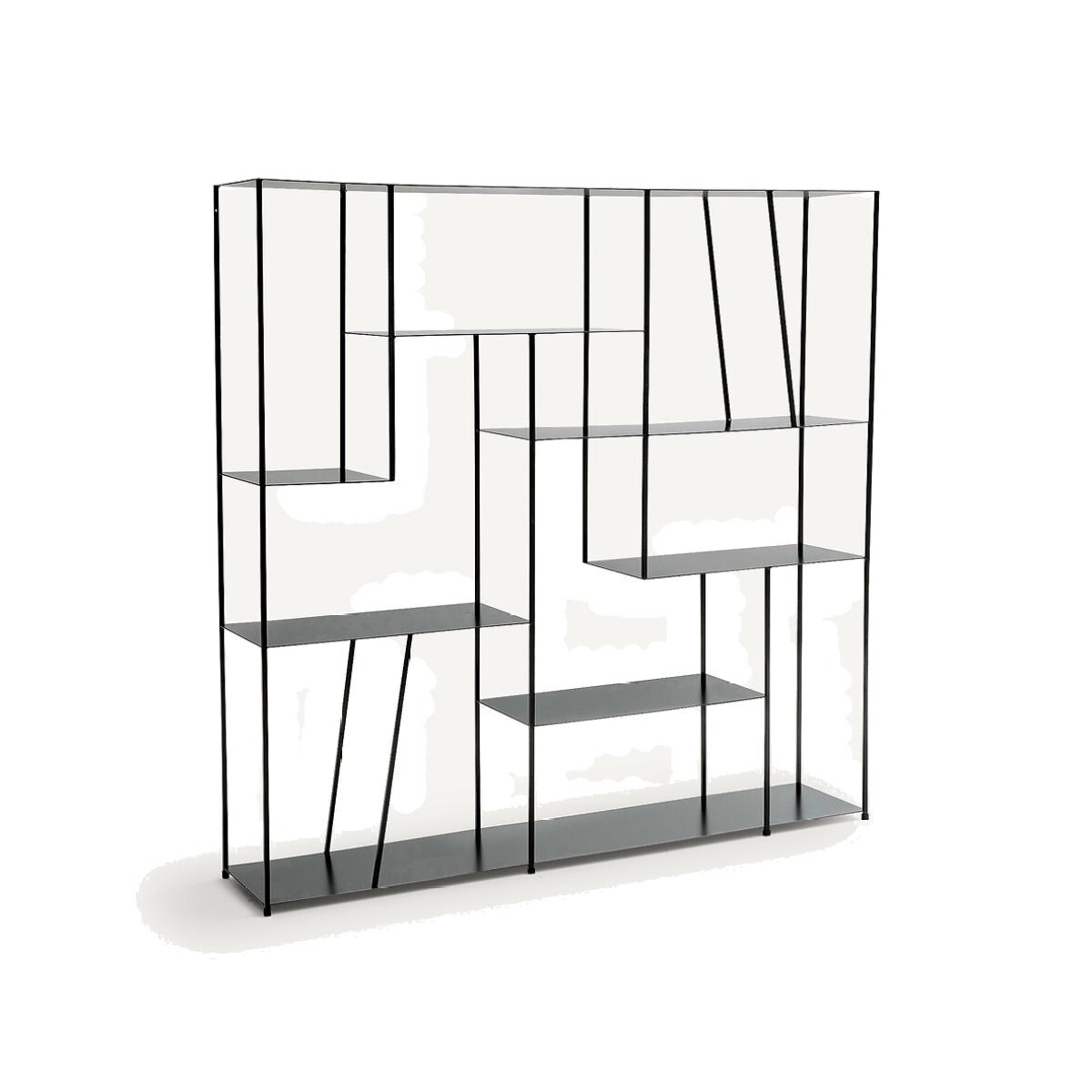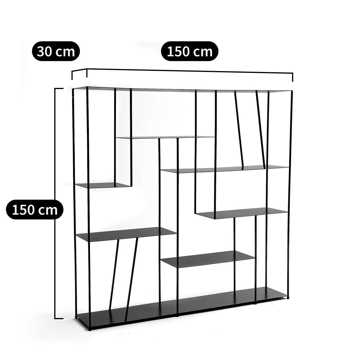 The Kanato metal bookcase. This stylish contemporary metal bookcase can be used for storage or as a room divider. Product Details • In metal with black epoxy paint • 6 shelves. Dimensions • L150 x H150 x D30cm. Home delivery:It will be delivered to your home. Note! Please check that all access points are large enough to accommodate your delivery (doors, stairs, lifts).Parcel Dimensions • L161 x H37 x D158cm • 62.5kg