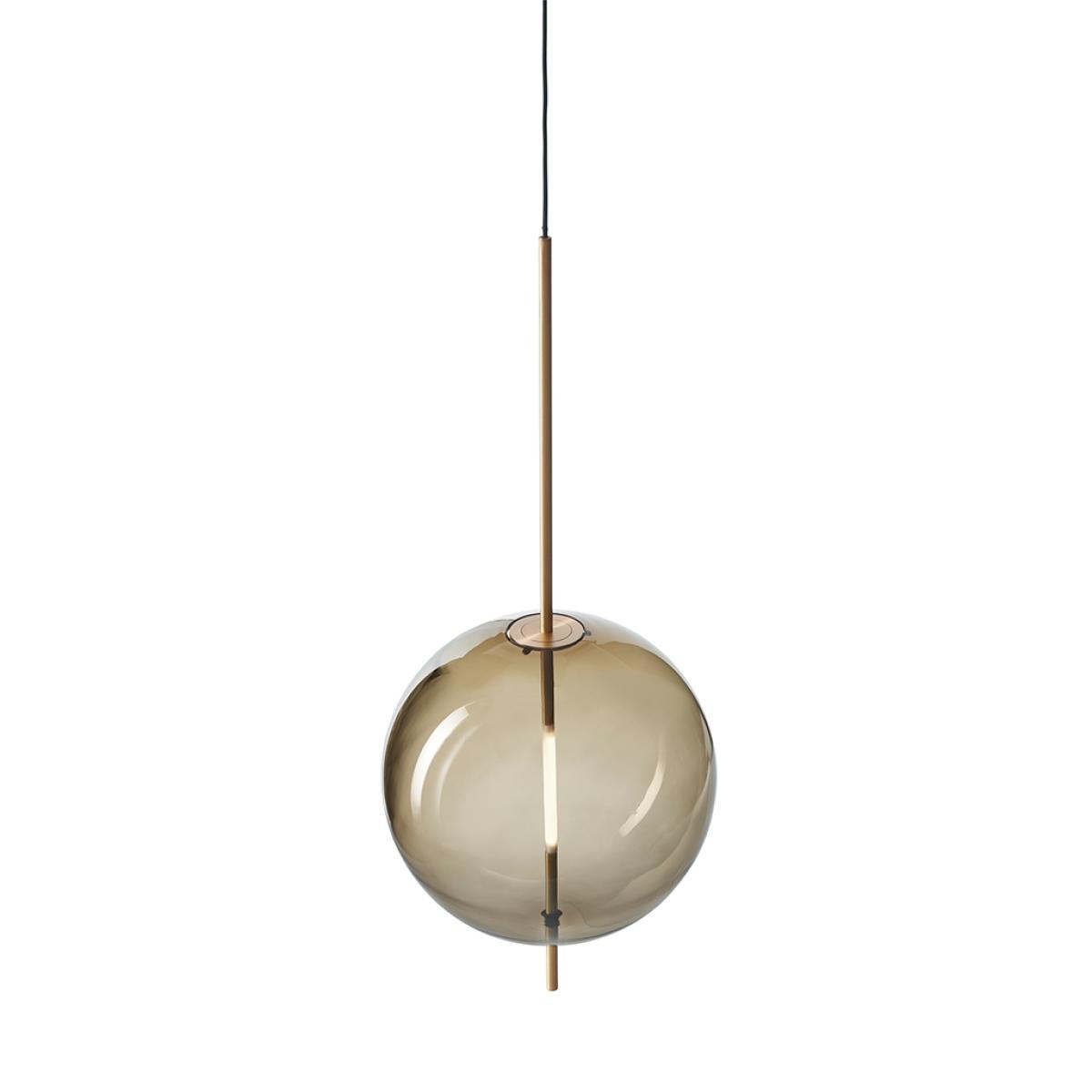 Exclusive to The Conran Shop, Pholc's dimmable Kandinsky Pendant Light 45cm in smoked grey was designed by Swedish duo Broberg & Ridderstråle as a minimalist lighting statement for the contemporary home. Inspired by the abstract circle paintings by Bauhaus icon Wassily Kandinsky, each glass and brass custom-crafted light connects a sphere and spear mid-air to create a striking lighting statement, be that on its own over a dining table or as a group in a large open space. Based in Stockholm, Broberg & Ridderstråle is an architecture and design practice composed of Mats Broberg and Johan Ridderstråle. Drawing inspiration from everyday life and lending an emotional value to each design, Broberg & Ridderstråle's creations make unique additions to any contemporary space. Features an integrated 5W LED bulb. Care instructions: Wipe away dust with a dry cloth.