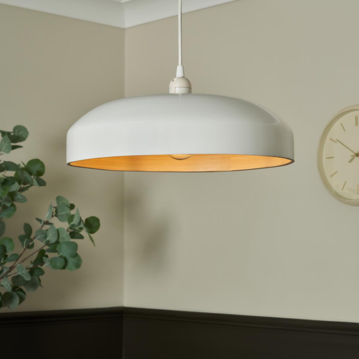 I love this simple yet stylish bamboo shade for its versatility and relaxed aesthetic. Its neutral white exterior makes it easy to incorporate into various schemes, from Scandi and coastal to modern minimalist spaces. The natural bamboo lining adds a warm touch and subtle texture, creating a softer light diffusion. It works well above dining tables, kitchen islands, or in living areas where you want to add a touch of laid-back charm without overwhelming the space. Practical styling tips include pairing it with minimalist decor for a clean look, or contrasting it with colourful accessories for a lively feel. This shade is a smart choice for creating a calm, welcoming atmosphere while being straightforward to fit and maintain.